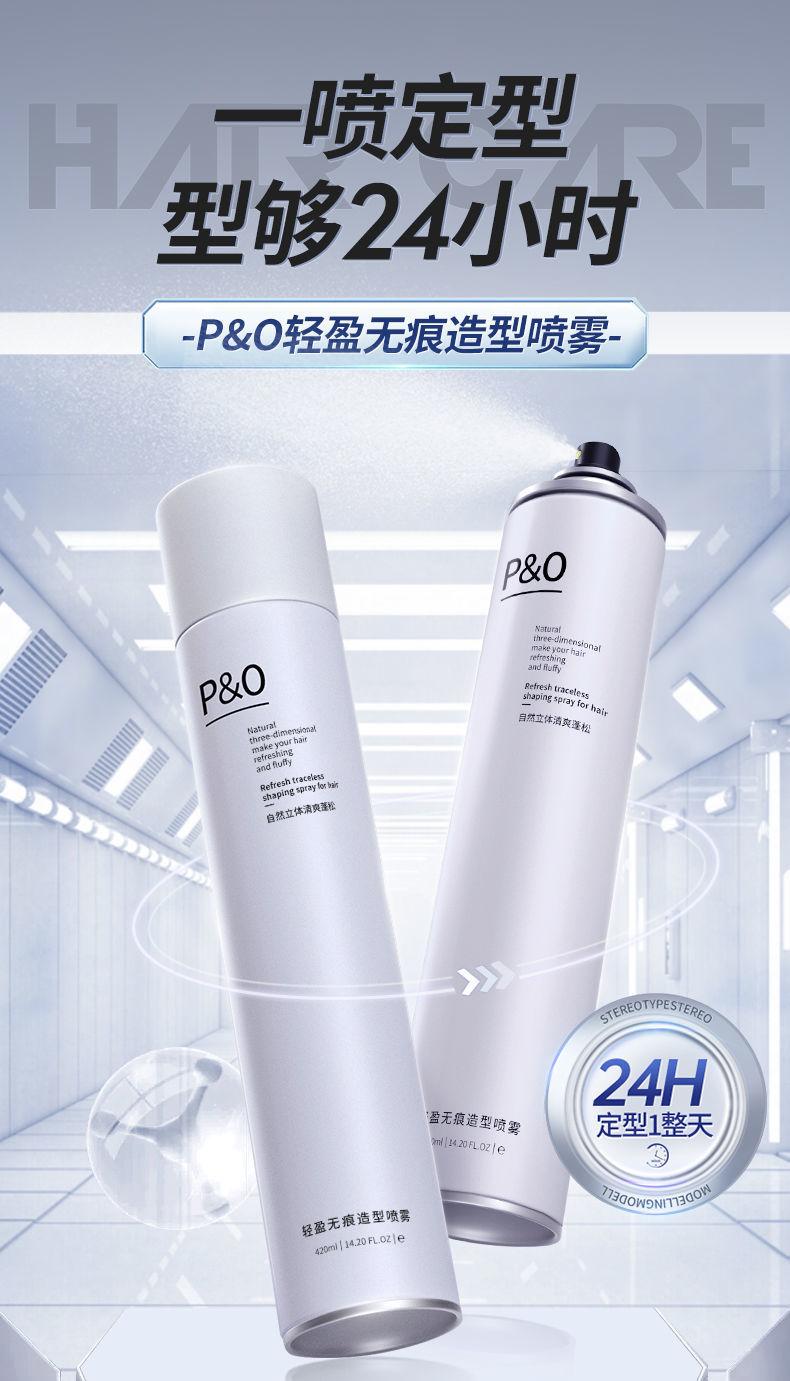 P&o light and traceless styling spray 420ml, P&o three-dimensional quick-drying traceless setting spray 420ml,...