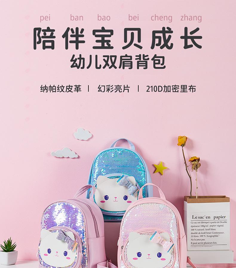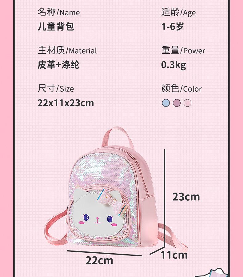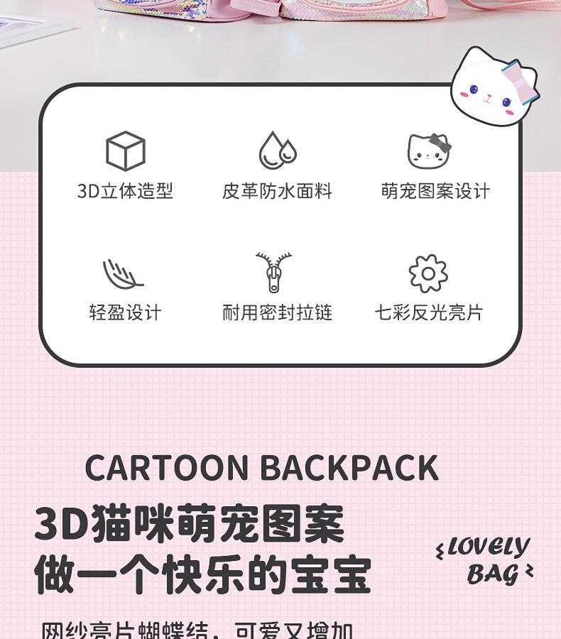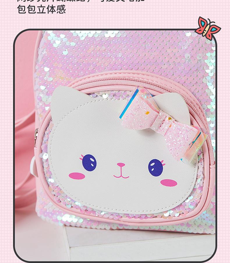 Mochila para niñas lindo gato de dibujos animados lentejuelas bolsa para niños mochila adecuada para niñas viajar salir