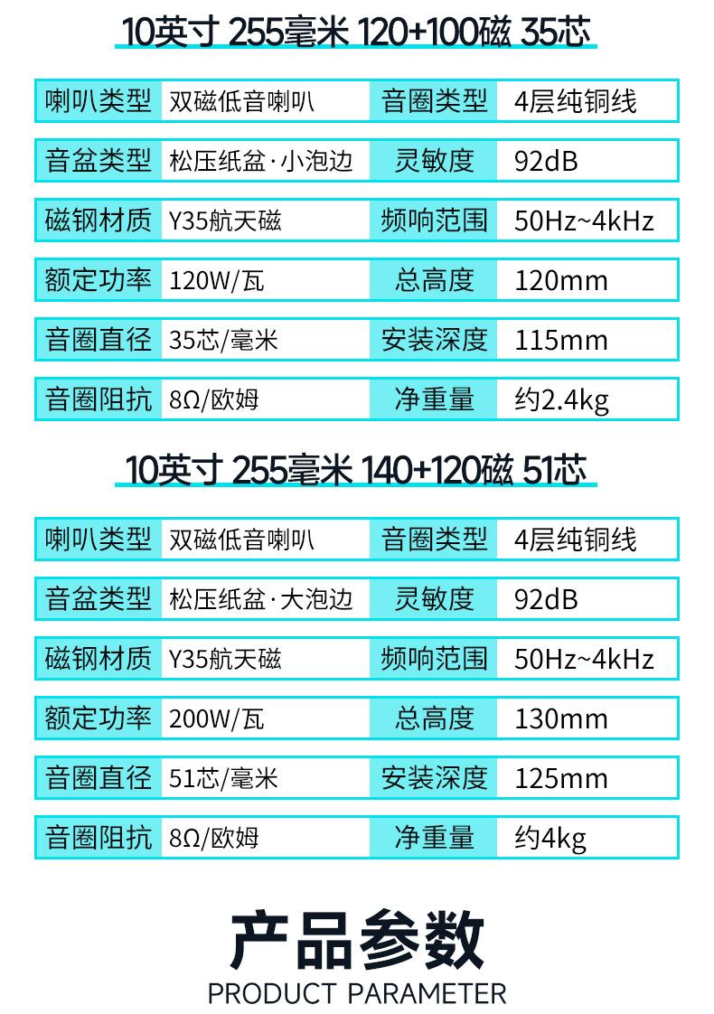 Altavoz de tarjeta de 3, 8 y 10 pulgadas con graves medios, doble imán, altavoz de audio doméstico de alta potencia