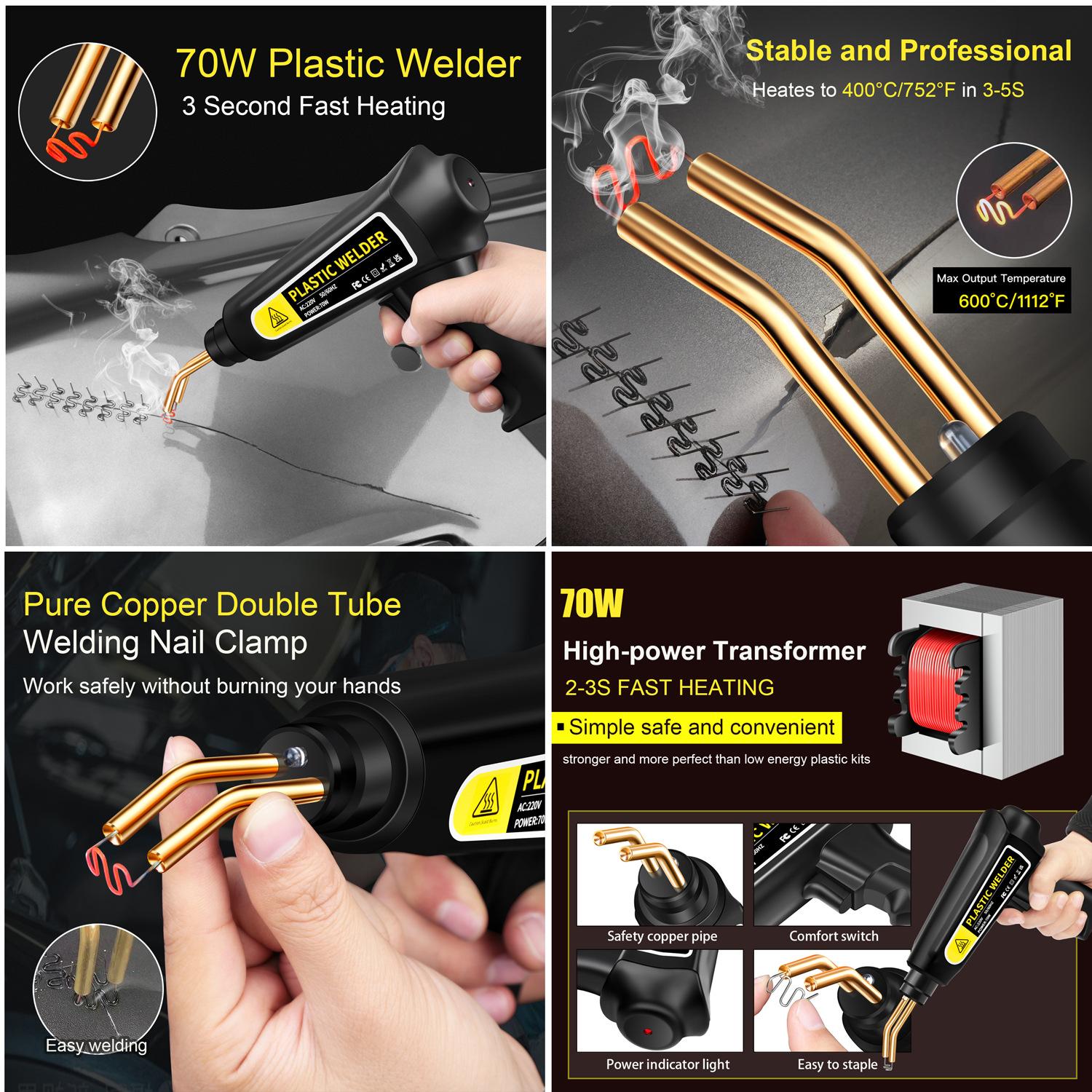 | Pistola de soldadura de plástico para parachoques de coche, máquina de soldadura de plástico, juego de herramientas, clavo de soldadura con calefacción, reparación de daños por grietas de plástico, descuento | ¥20 |