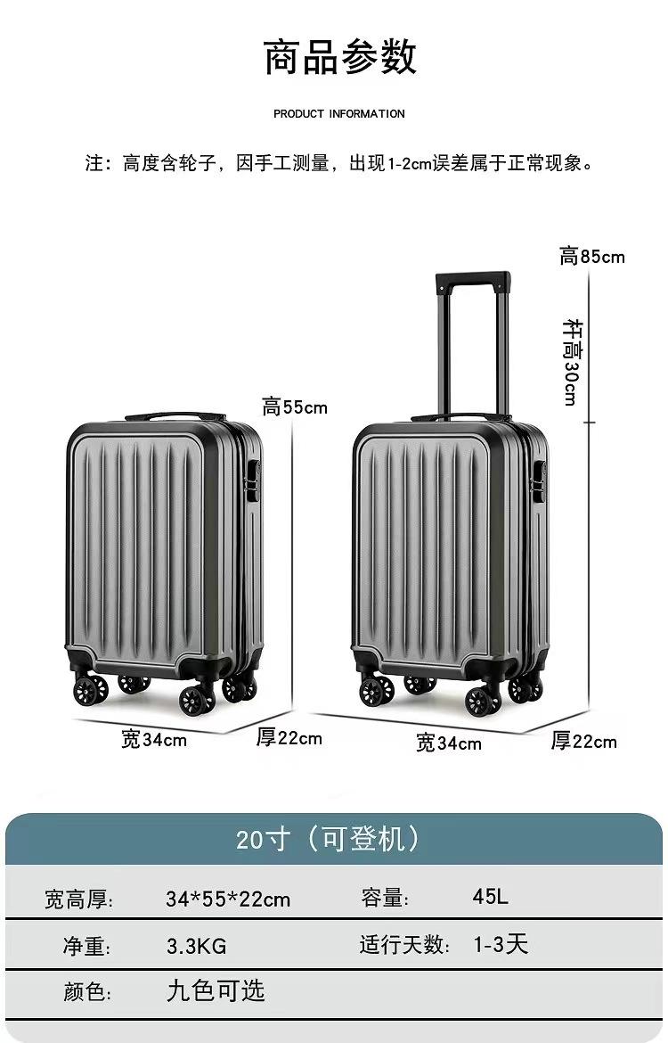 Maleta de 20 pulgadas de gran capacidad de color sólido, maleta de viaje de ocio plegable, rueda universal, maleta con carrito portátil, venta al por mayor