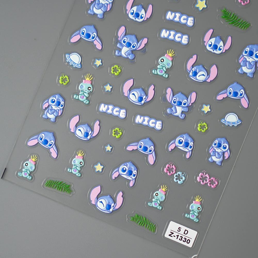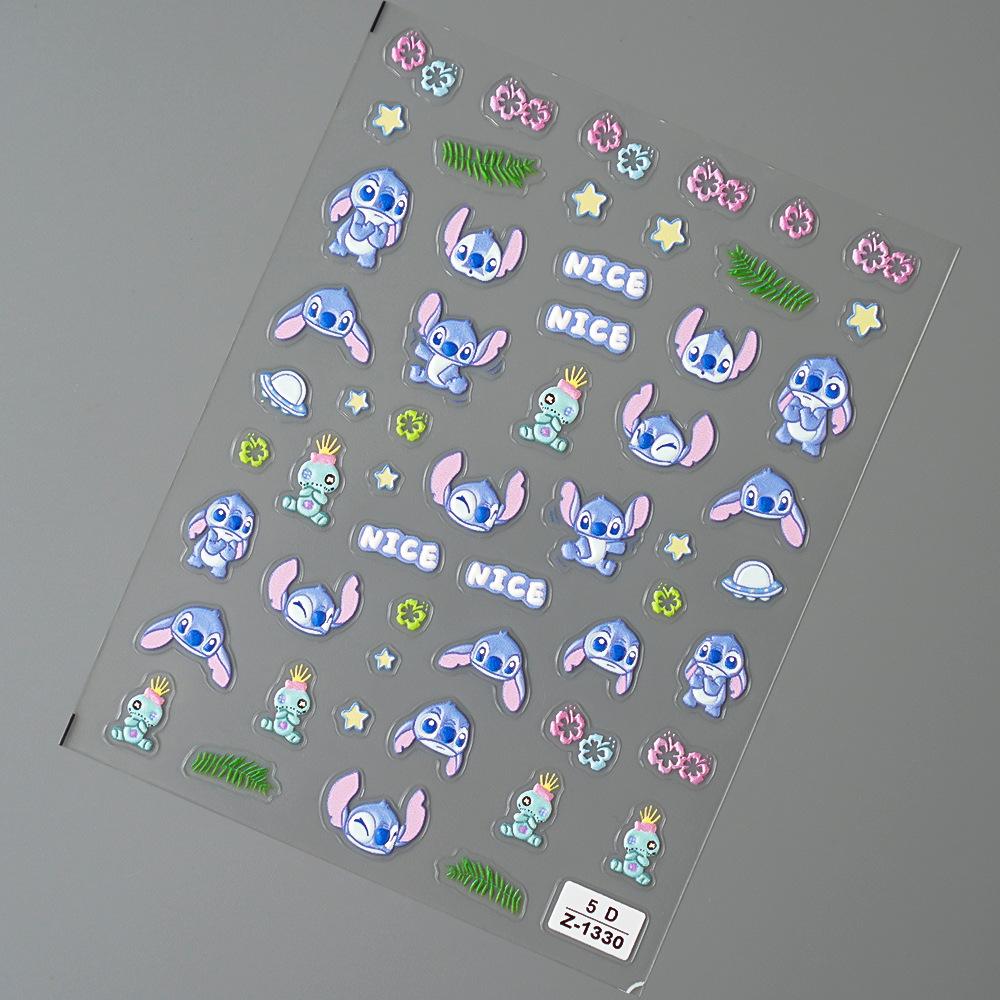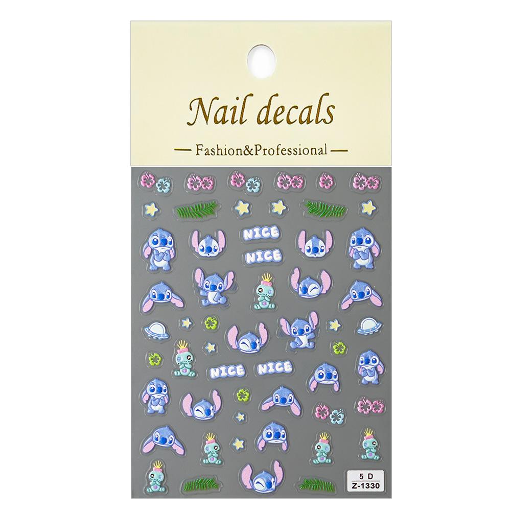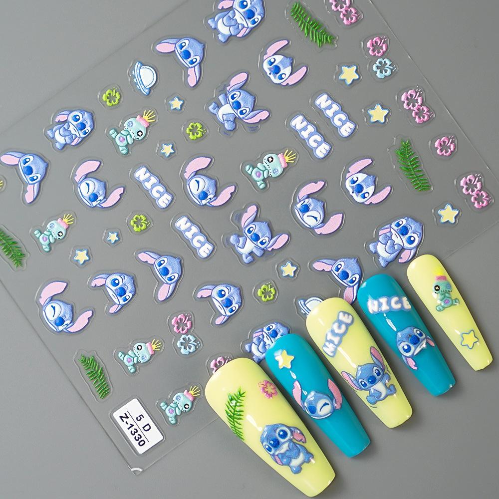 Redanco - Nuevas pegatinas 5D con relieve de dibujos animados de Stitch para decoración de uñas, pegatinas adhesivas estéreo para uñas, venta al por mayor