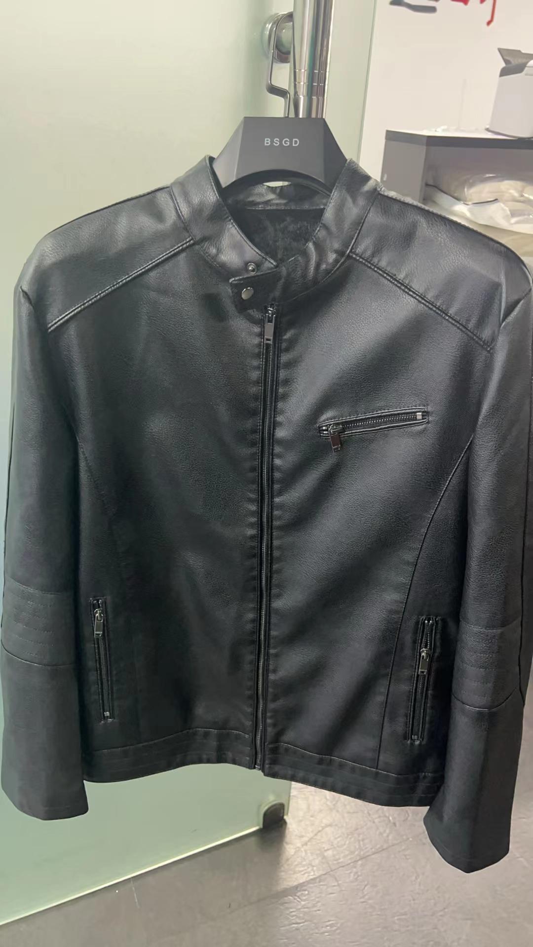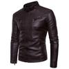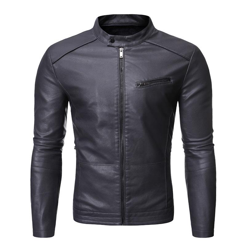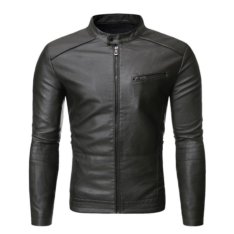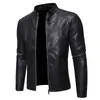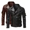 Chaqueta de cuero de motocicleta para hombre, estilo europeo y americano, con cuello alto, de cuero lavado, para otoño e invierno de 2024.