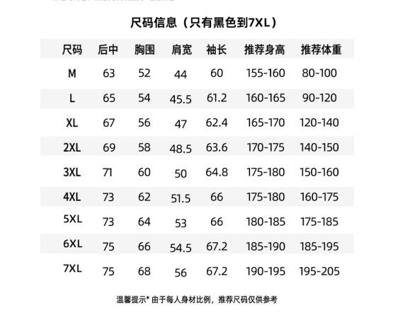 M, L, XL, 2XL, 3XL, 4XL, 5XL, 6XL, 7XL