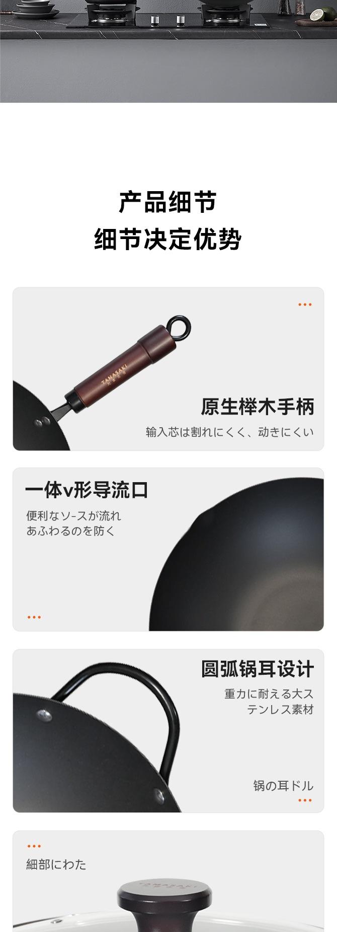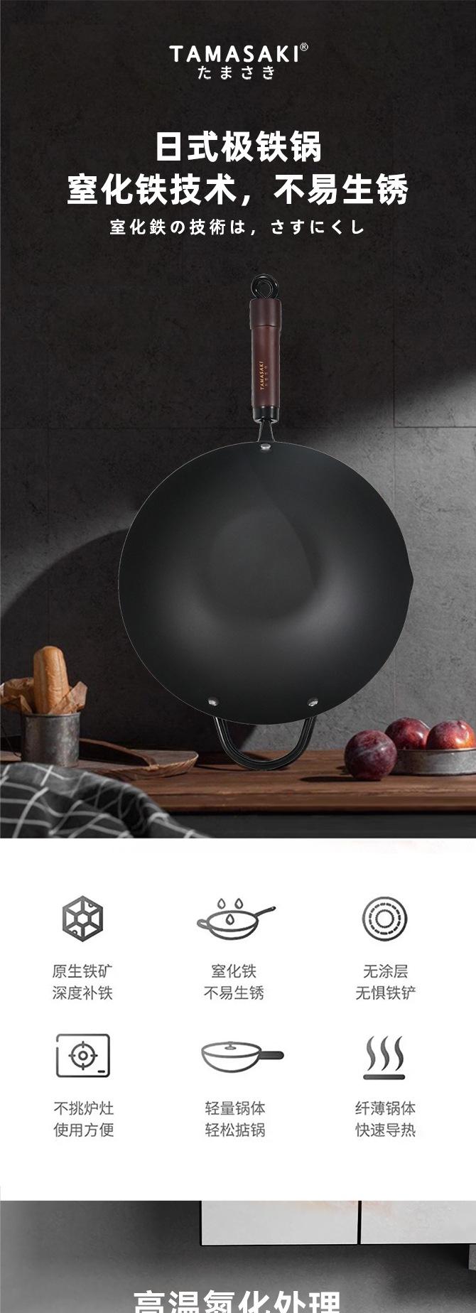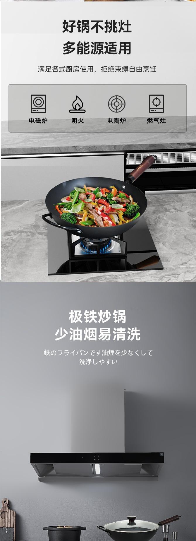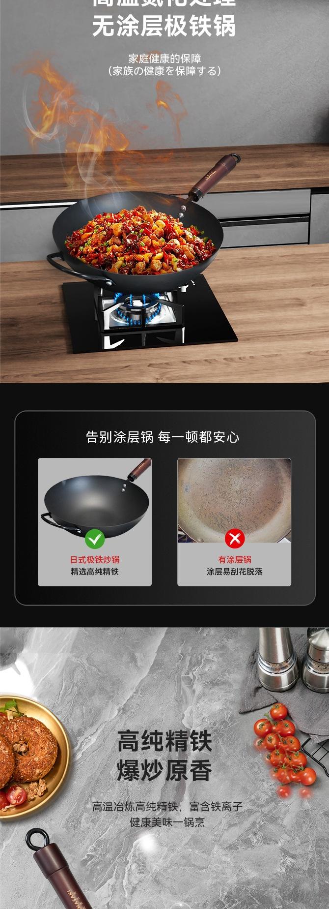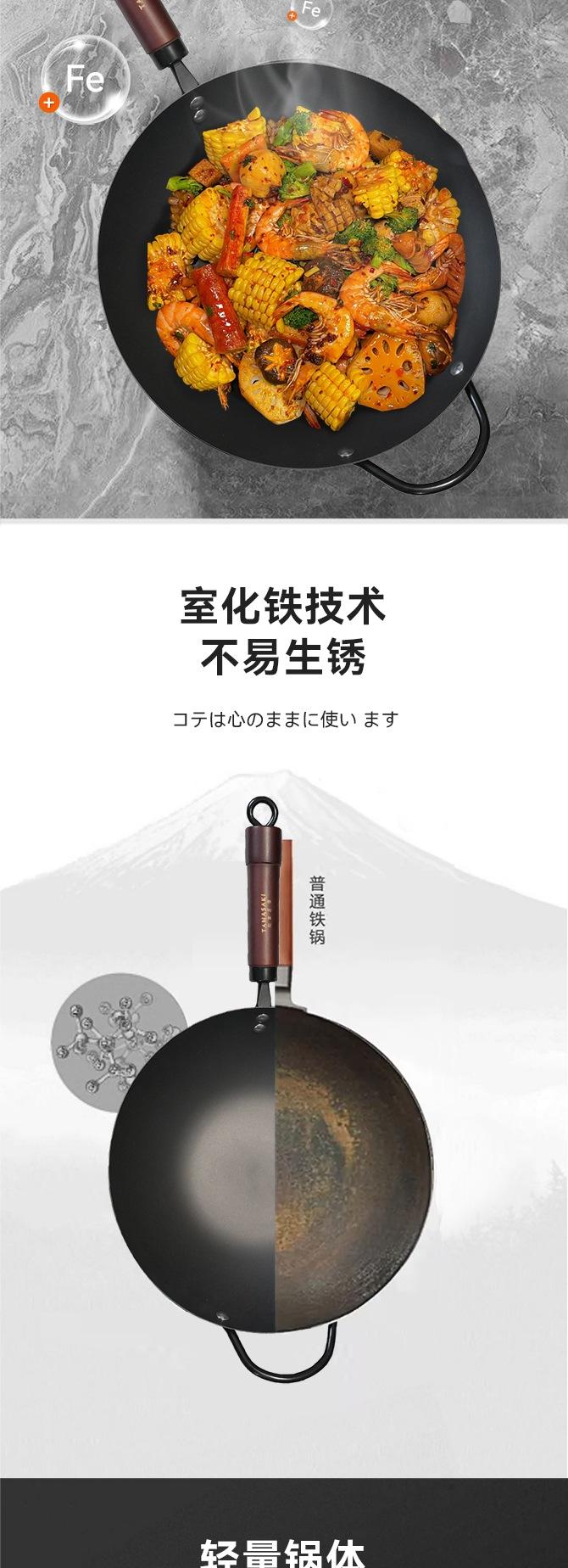 Olla de Hierro de Polo Estilo Japonés Olla Antiadherente sin Recubrimiento Wok Doméstico Olla Libre Wok Especial para Estufa de Gas