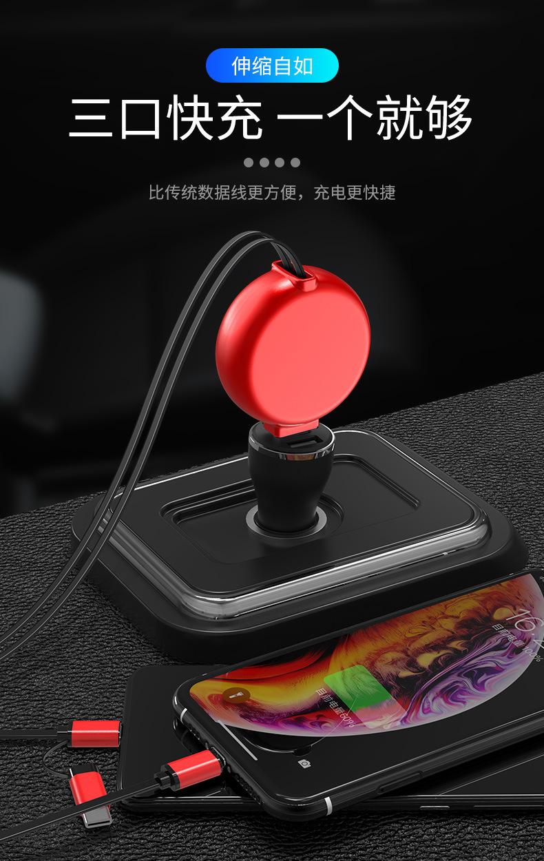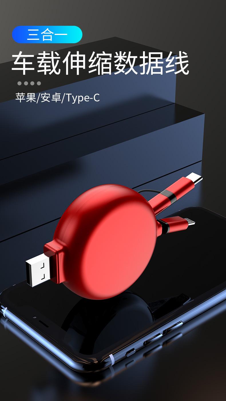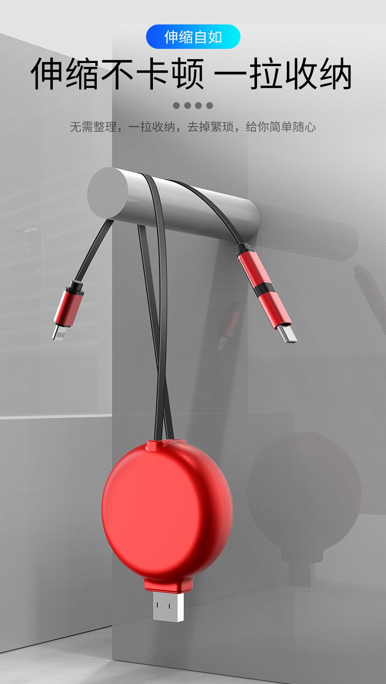 Cable de Datos de Carga Retráctil Carga Rápida Tres en Uno Apple Android Huawei Coche Hogar Viaje Cable de Carga para Teléfono Móvil