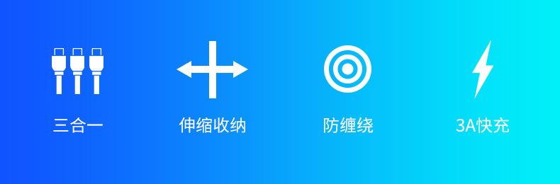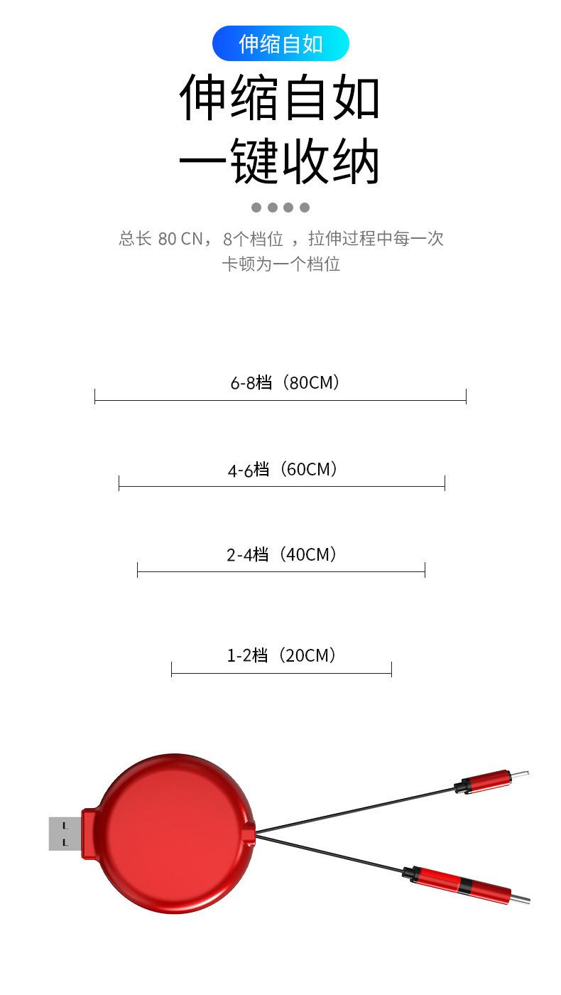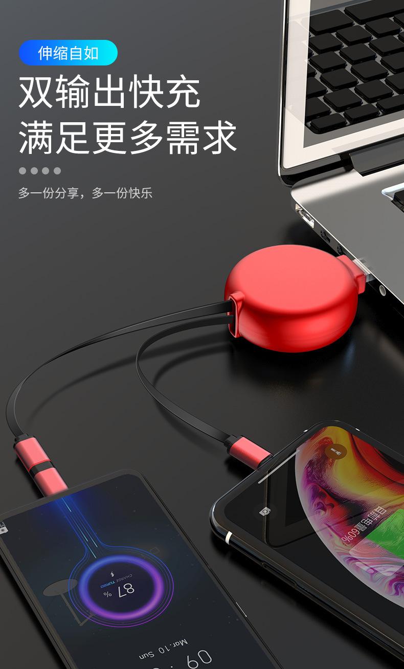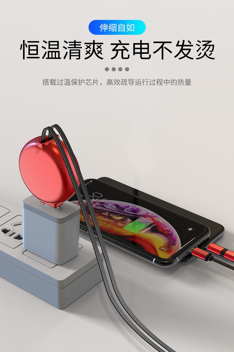 Cable de Datos de Carga Retráctil Carga Rápida Tres en Uno Apple Android Huawei Coche Hogar Viaje Cable de Carga para Teléfono Móvil