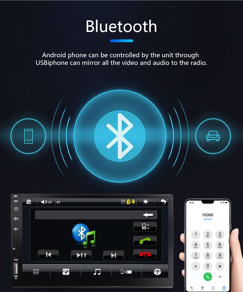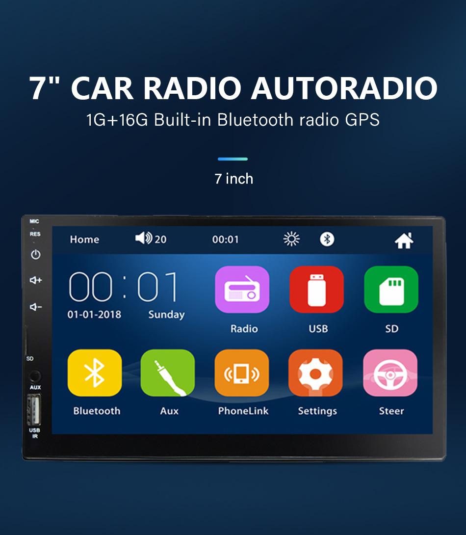 1. Radio de coche MP5 2 din HD de 7 pulgadas con pantalla táctil digital.