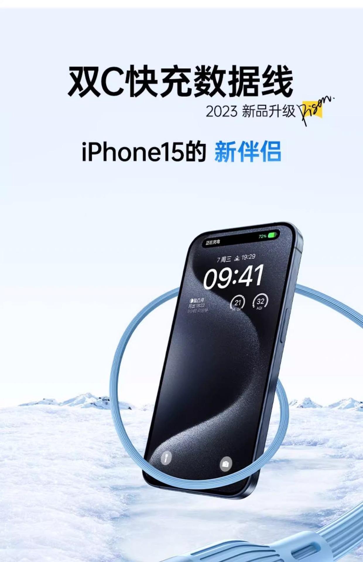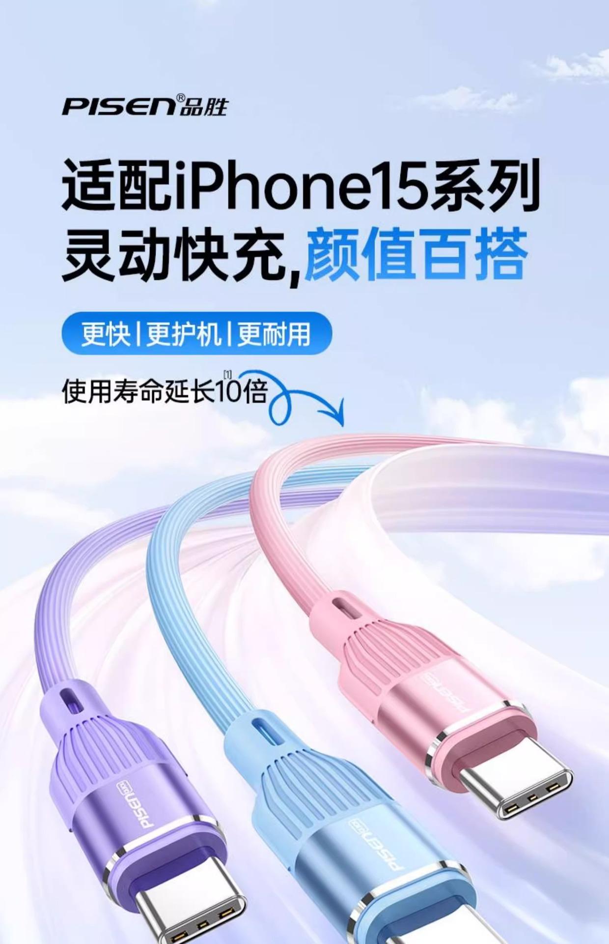 Cable de datos Pinsheng de doble tipo C para Apple 15, cable de carga para iPhone 14 Pro Max, cable de carga USB-C