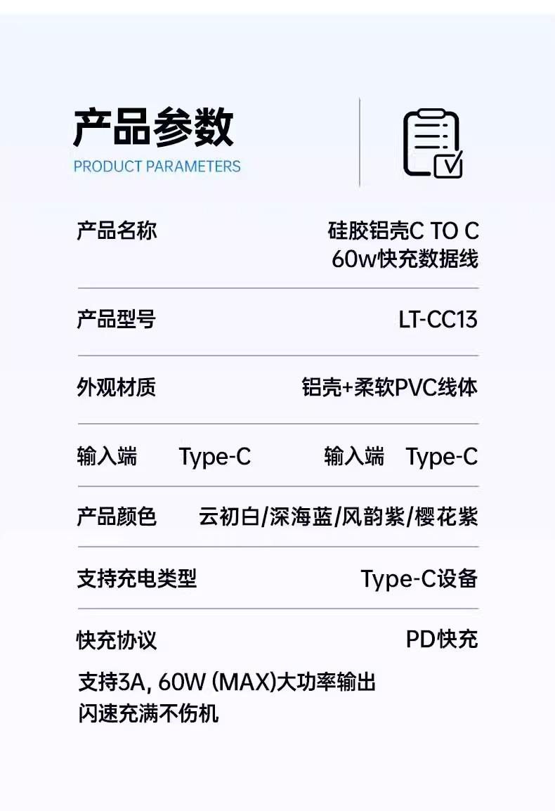 [60W Yunchubai] 1.2 m Double typec Line, [60W Far Peak Blue] 1.2 m Double typec Line, [60W Cherry Blossom] 1.2...