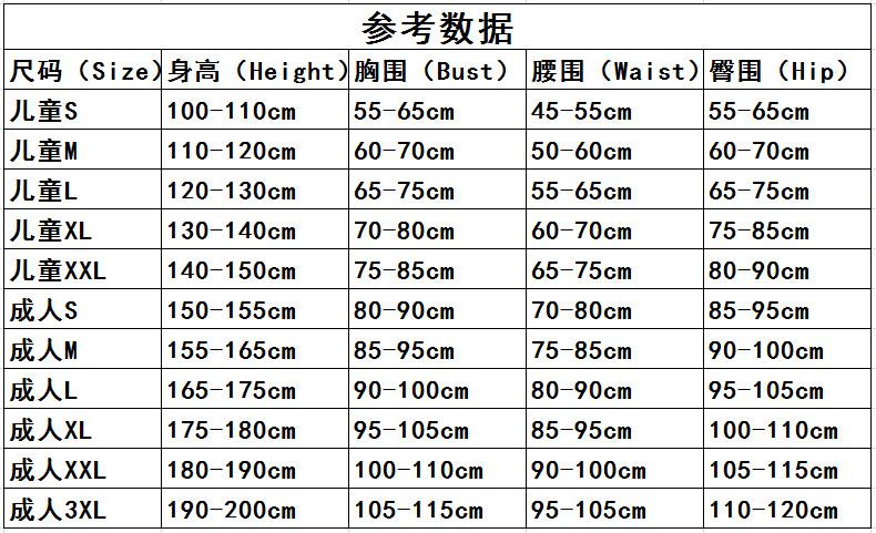 Modelo infantil (por altura):100-110cm;110-120cm;120-130cm;130-140cm;140-150cm