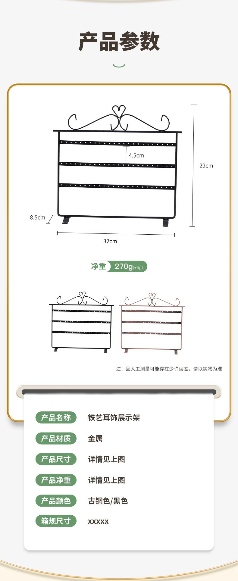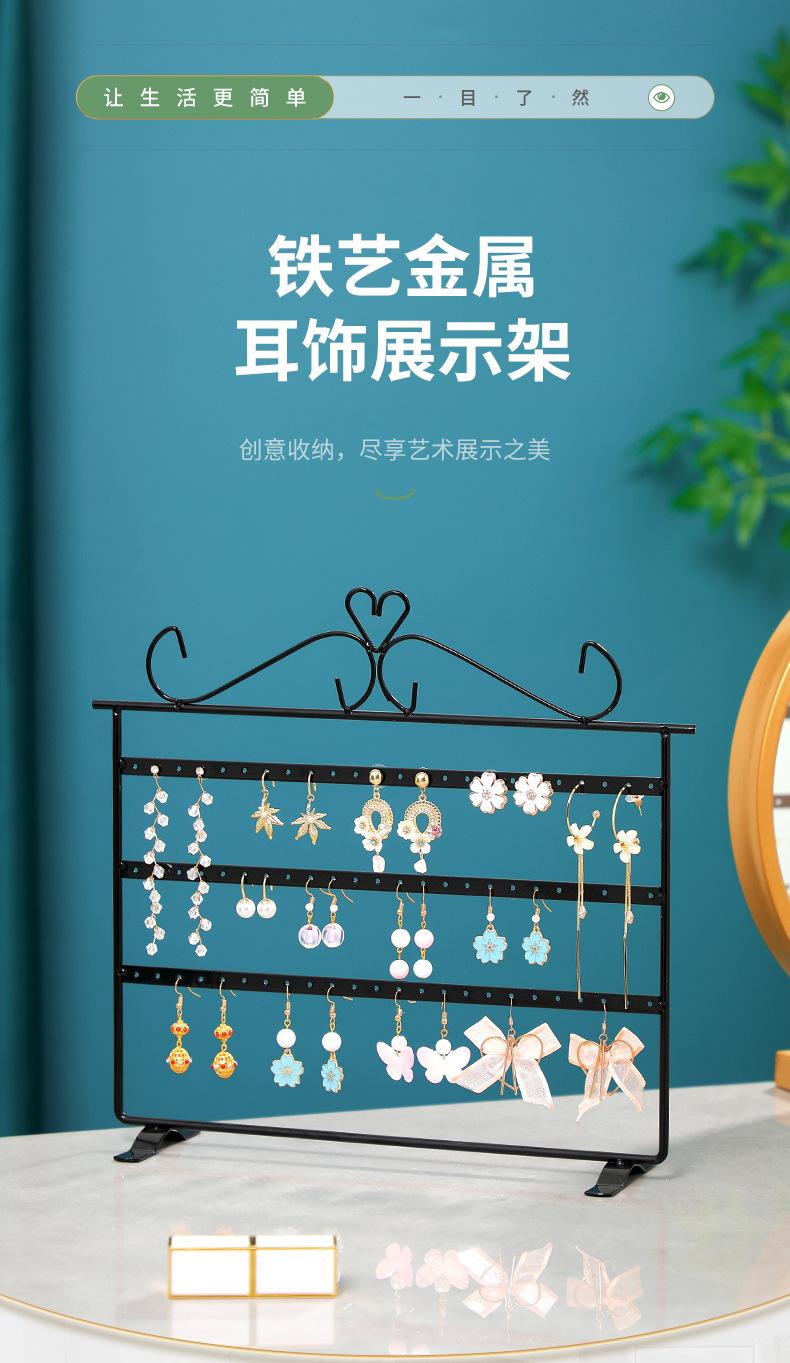 Estante de exhibición de joyas de hierro, estante de gran capacidad de tres capas, estante de exhibición de joyas, estante de exhibición de aretes y collares, estante de almacenamiento