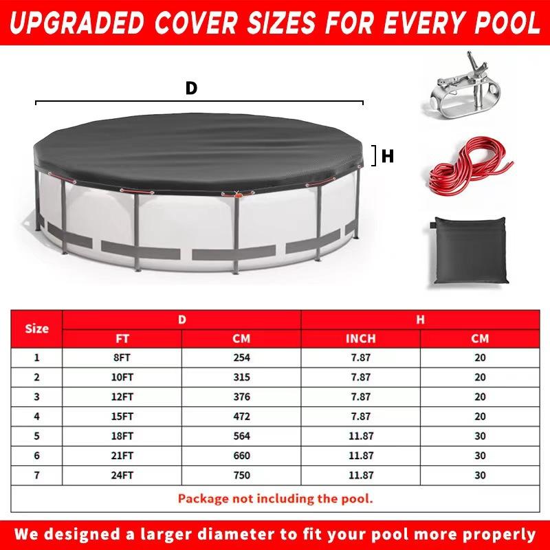 Cubierta para Piscina Amazon Exterior Cubierta de Tela Oxford 210D Redonda Anti-Caída de Hojas Cubierta para Piscina de Patio Engrosada Resistente al Desgaste Impermeable