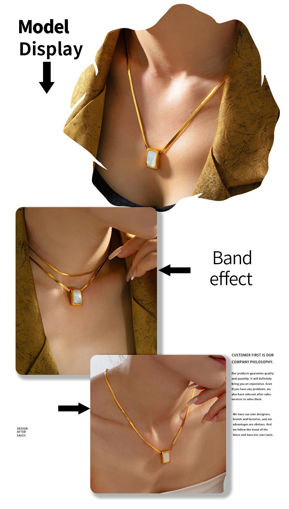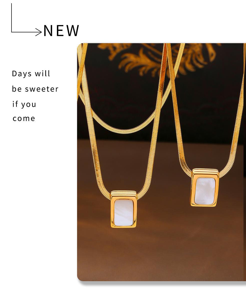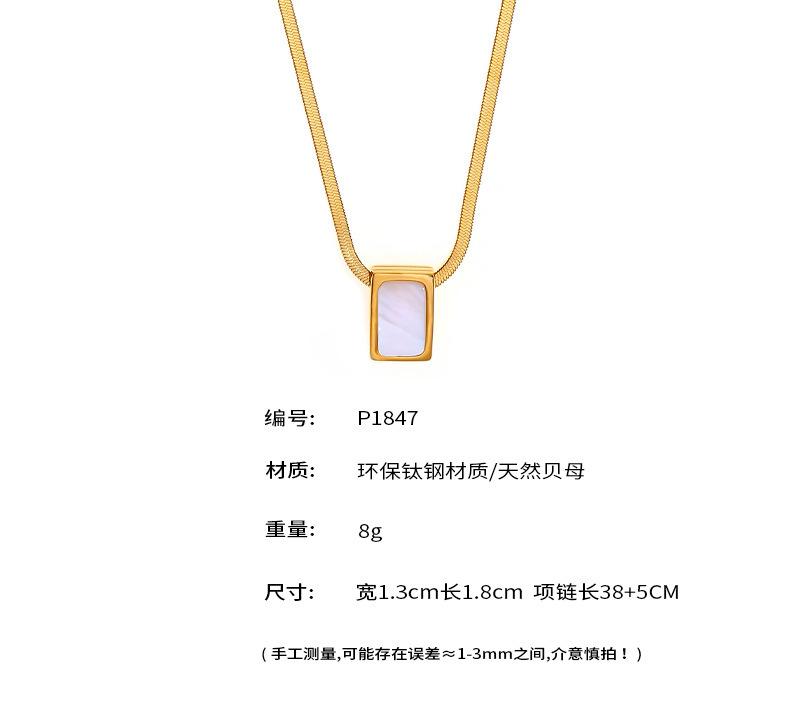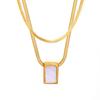 Collar con colgante de concha marina blanca cuadrada retro transfronteriza entre Europa y Estados Unidos, chapado en acero de titanio y oro real de 18 quilates, diseño de nicho, joyería al por mayor