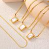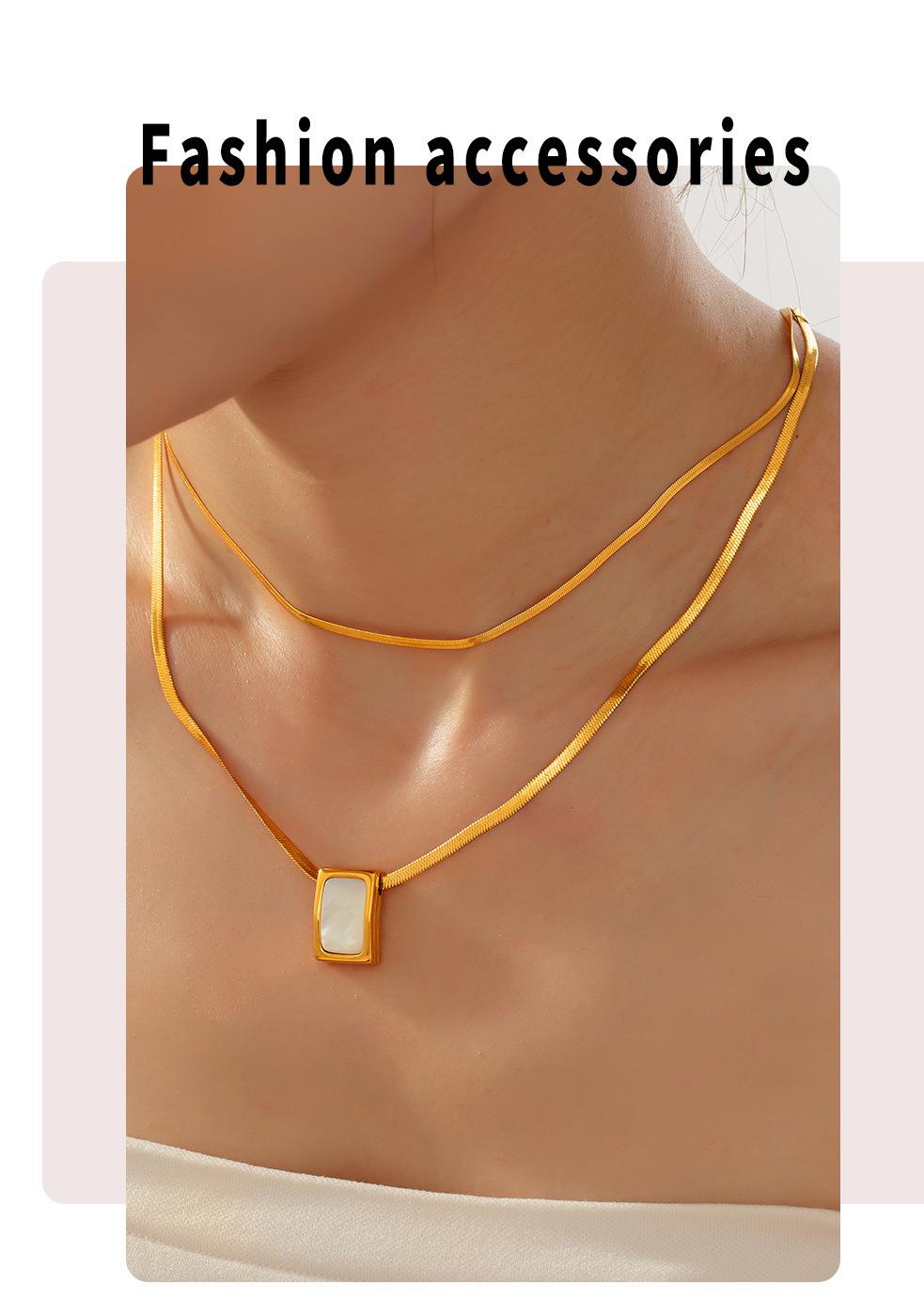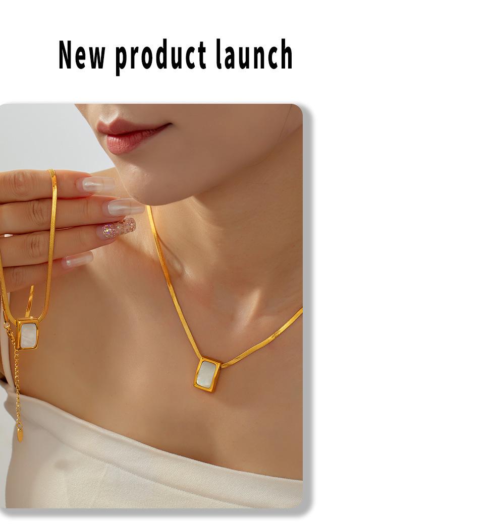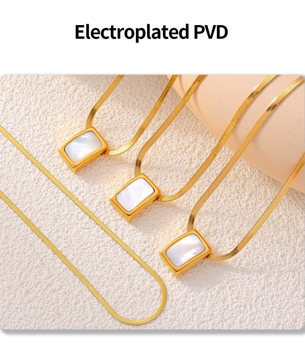 Collar con colgante de concha marina blanca cuadrada retro transfronteriza entre Europa y Estados Unidos, chapado en acero de titanio y oro real de 18 quilates, diseño de nicho, joyería al por mayor