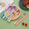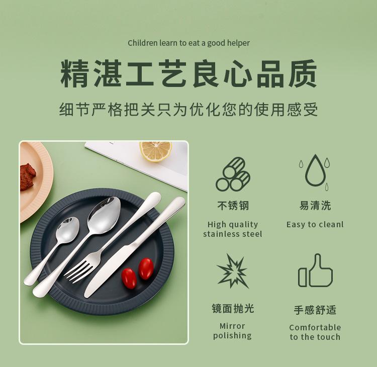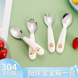 | Vajilla infantil de acero inoxidable 304 con dibujos animados, cuchara de alimentación para el hogar, vajilla para comida de bebé, cuchara, tenedor, juego de dos piezas |