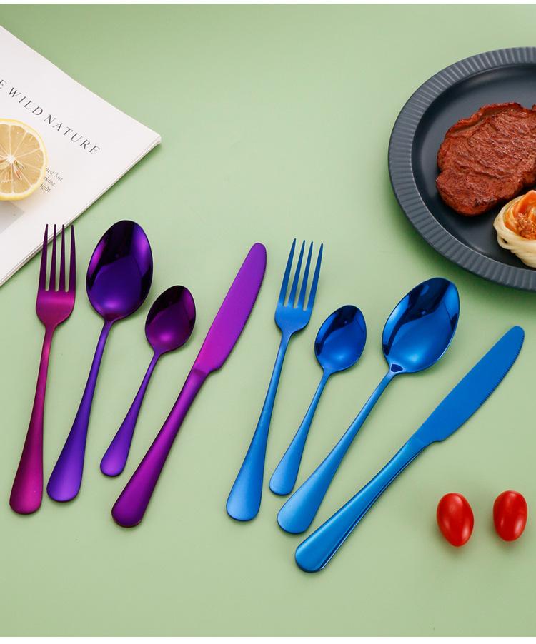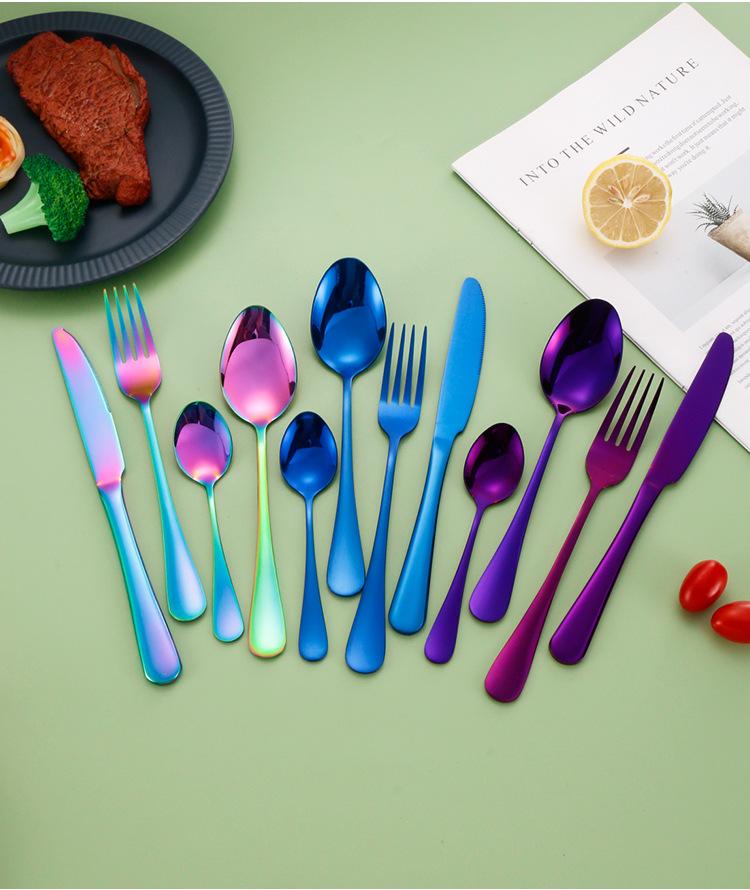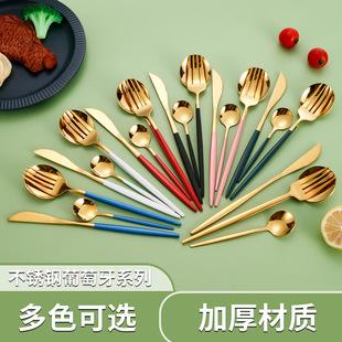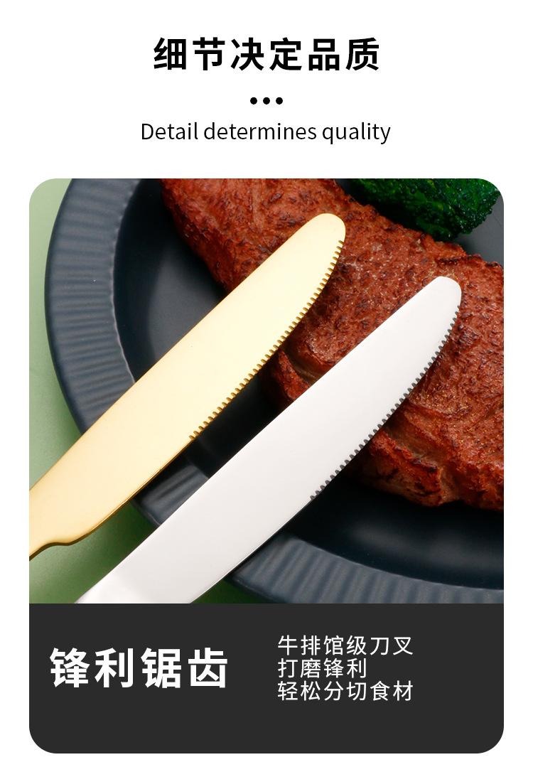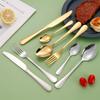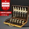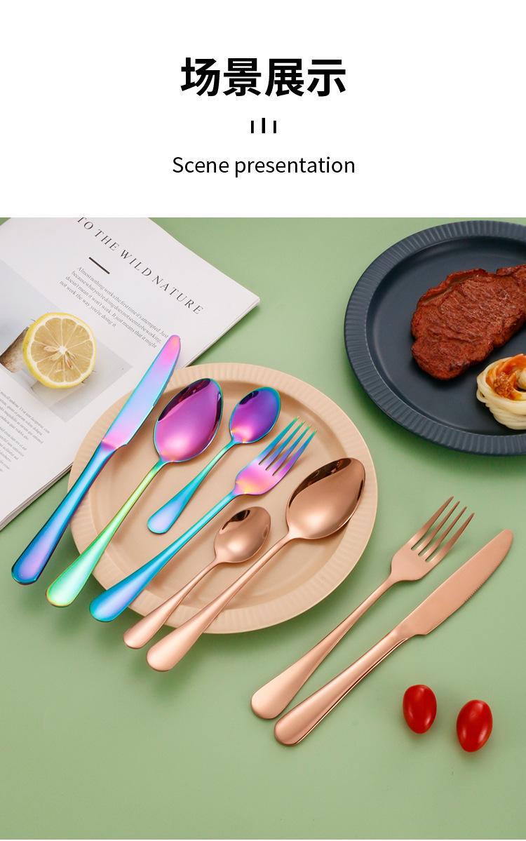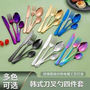 | Oferta especial de Amazon: juego de cuatro piezas de cuchillo, tenedor y cuchara de acero inoxidable 1010, cuchillo y tenedor para carne estilo occidental, cubiertos chapados en oro. |