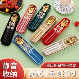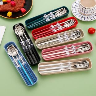 | Cubiertos portátiles de acero inoxidable, cuchara, tenedor, palillos, juego de tres piezas portugués, juego de cubiertos para estudiantes, regalo para exteriores |