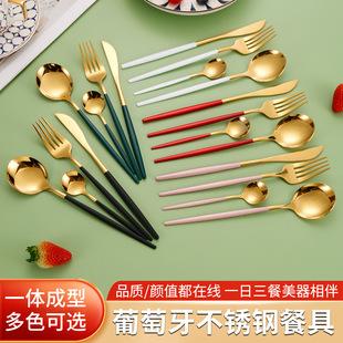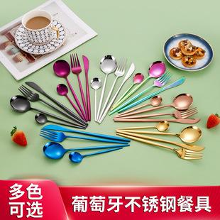 | Juego de cuchillo y tenedor y cuchara de acero inoxidable portugués transfronterizo de Amazon, cuchillo para carne y tenedor y cuchara, cuatro piezas principales, vajilla occidental |