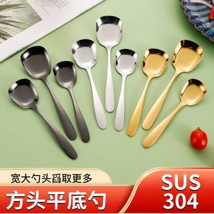 | Cuchara de fondo plano de acero inoxidable 304, cuchara de cabeza cuadrada caliente Douyin, cuchara Yuanbao, cuchara de postre china espesa, cuchara de sopa para estudiantes |