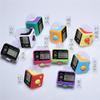 Color: morado, negro, verde, naranja, azul cielo, verde hierba, rojo rosa, rojo, limón, blanco