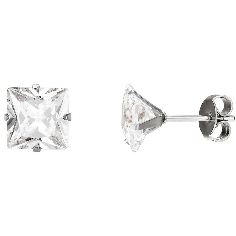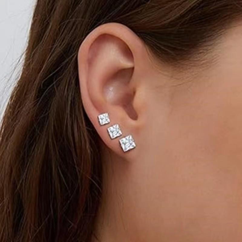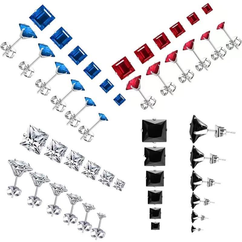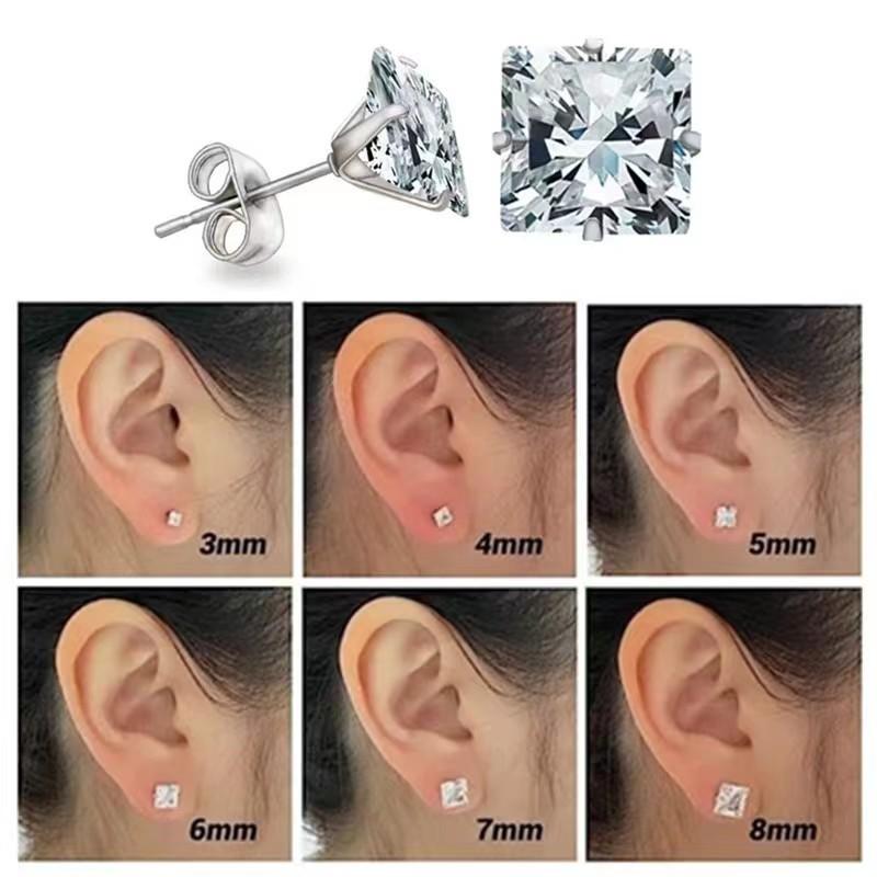 Pendientes cuadrados de circonita AAA de cuatro garras de acero inoxidable estilo moda europeo y americano