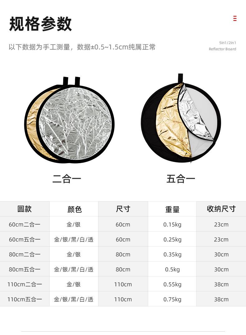 Compra Reflector Shenniu cinco en uno de 60 cm, portátil, plegable, de luz suave, para fotografía al aire libre, placa de luz redonda al por mayor en Joom.pro