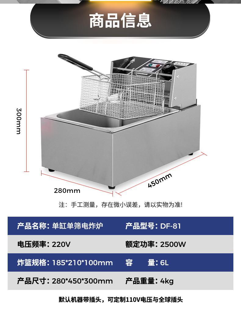 Freidora eléctrica comercial de un solo cilindro de temperatura constante, directa de fábrica, de acero inoxidable, con control de temperatura para pollos fritos, de gran capacidad
