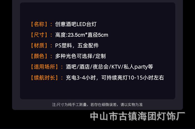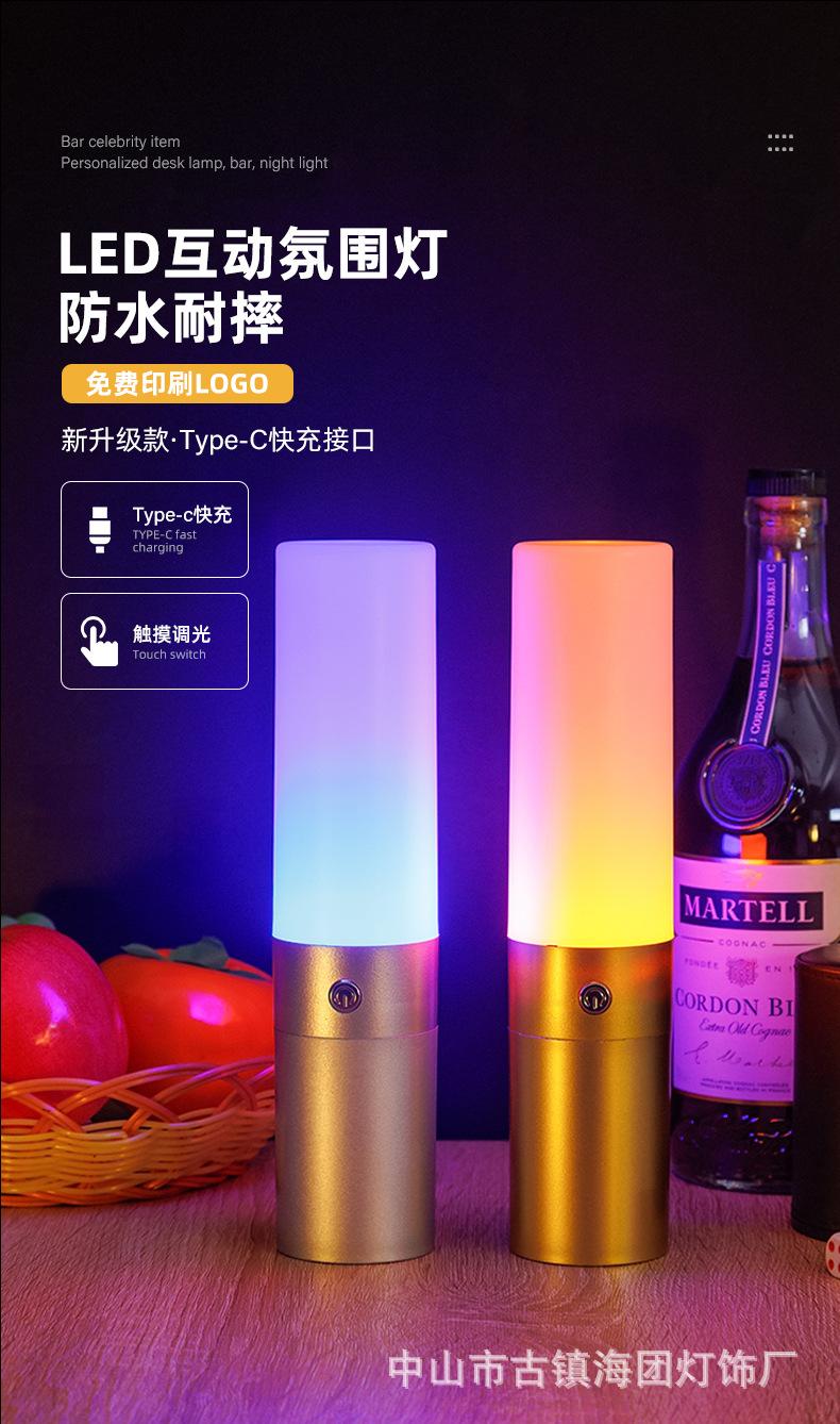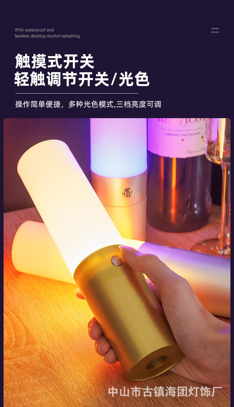 Lámpara de mesa LED recargable para bar, KTV, hotel, cafetería, lámpara de mesa decorativa, luz de noche, lámpara de mesa cilíndrica con forma de bastón.