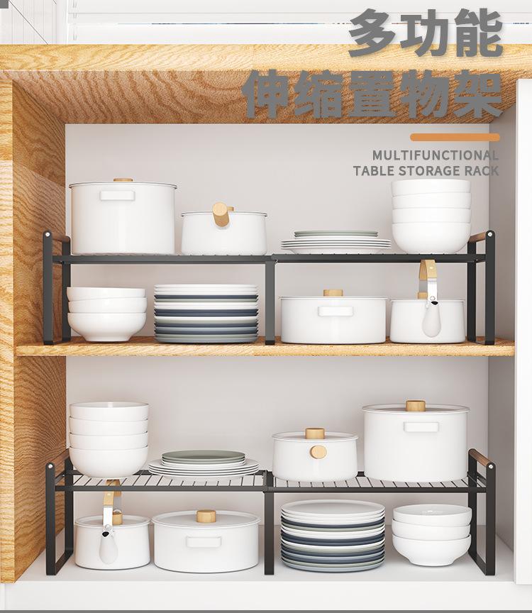 Venta al por mayor de fabricantes estante retráctil de cocina, partición de gabinete en capas, estante para guardar platos, especiero de encimera