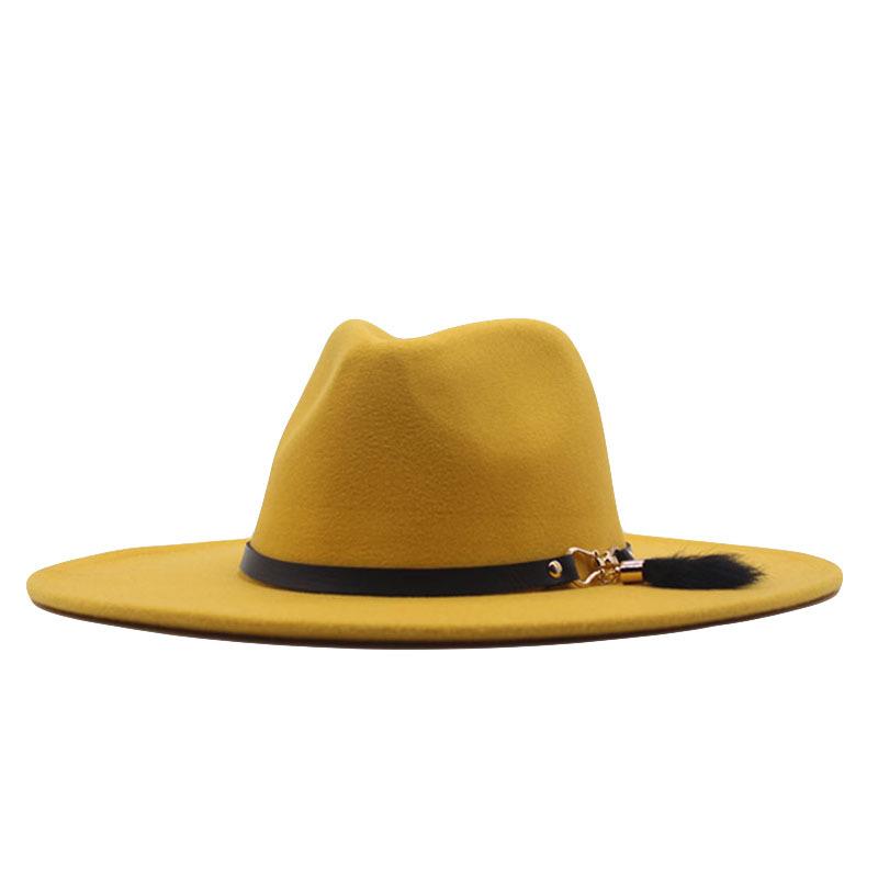 Sombrero de ala grande nuevo de estilo europeo y americano para mujer, de otoño e invierno, de lana estilo jazz, estilo británico, 10 cm