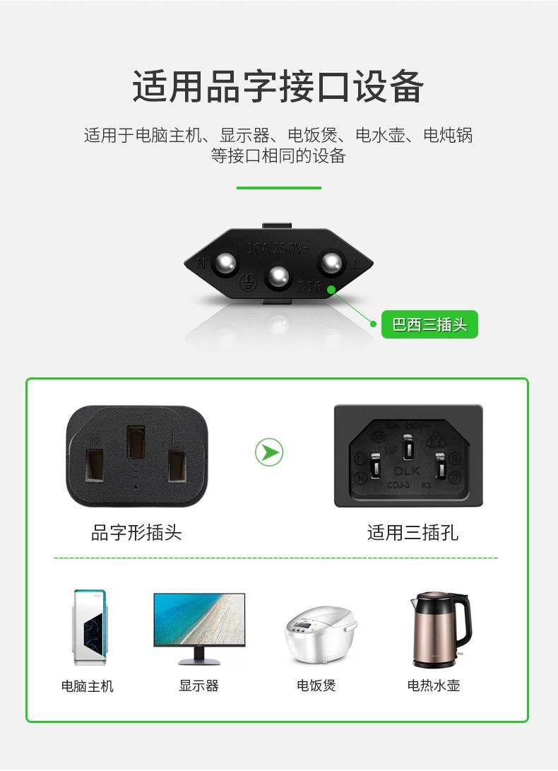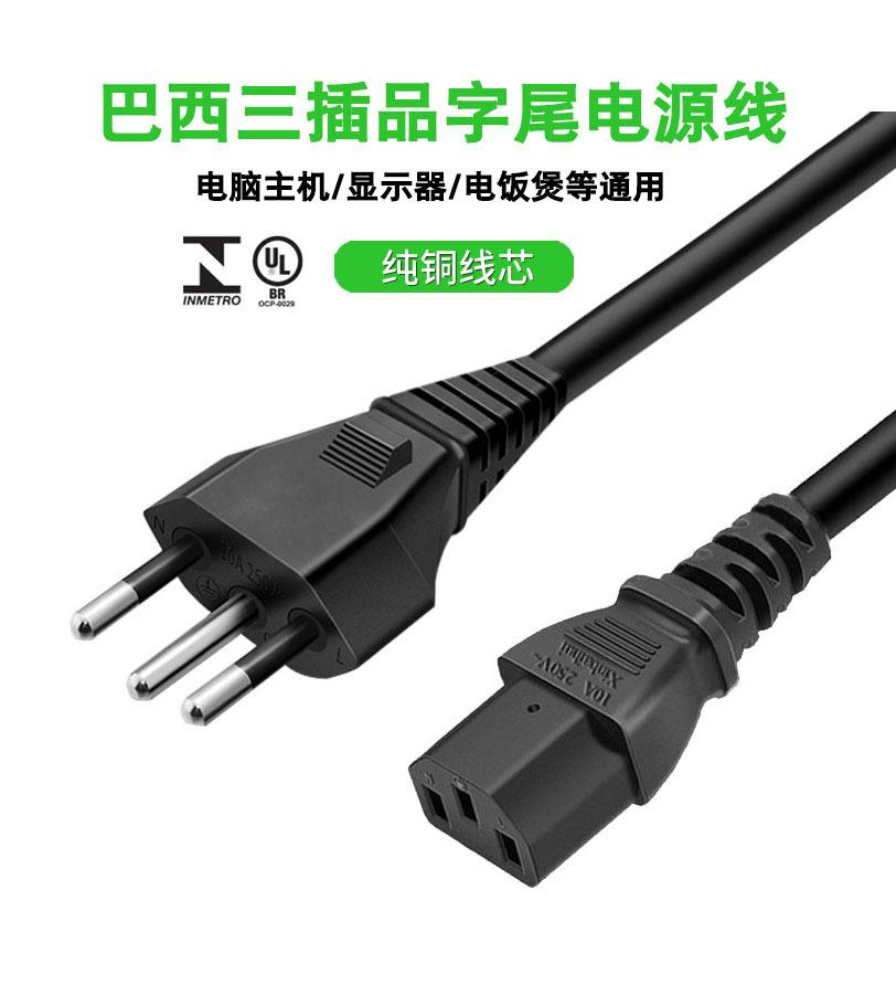 Cable de alimentación de cobre puro con tres enchufes, certificado INMETRO, de 1,5 metros, con clavija de enchufe brasileña, cable doméstico.