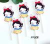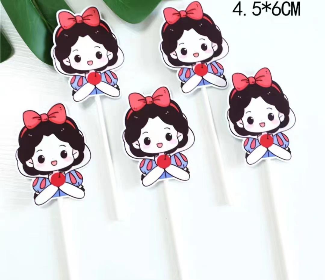 Tarjeta de pastel de mesa de postres de la pequeña princesa, pastel de cumpleaños de niña, pegatina de música con inserción de Blancanieves
