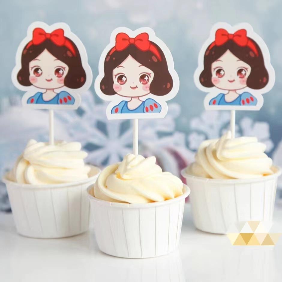 Compra Tarjeta de pastel de mesa de postres de la pequeña princesa, pastel de cumpleaños de niña, pegatina de música con inserción de Blancanieves al por mayor en Joom.pro