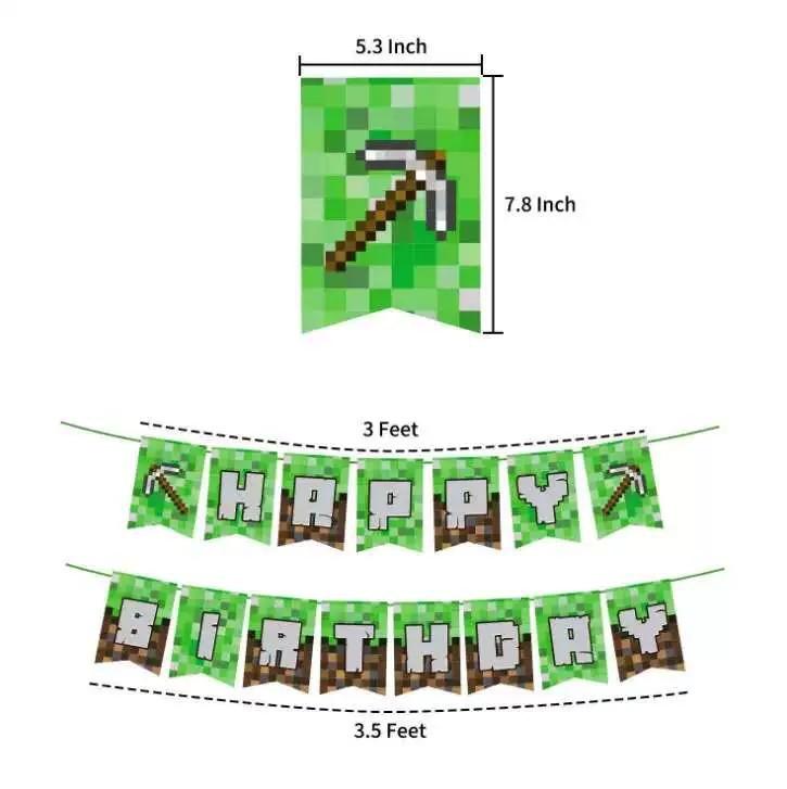 Minecraft Juego Pixel Wars Fiesta de Cumpleaños Vajilla Plato de Papel Vaso de Papel Decoración de Banderines Suministros de Globos