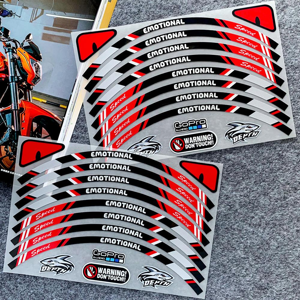 Pegatina reflectante para buje de rueda de motocicleta, scooter, impermeable, con personalidad, anillo de acero modificado, calcomanía de 10/12/13/14 pulgadas