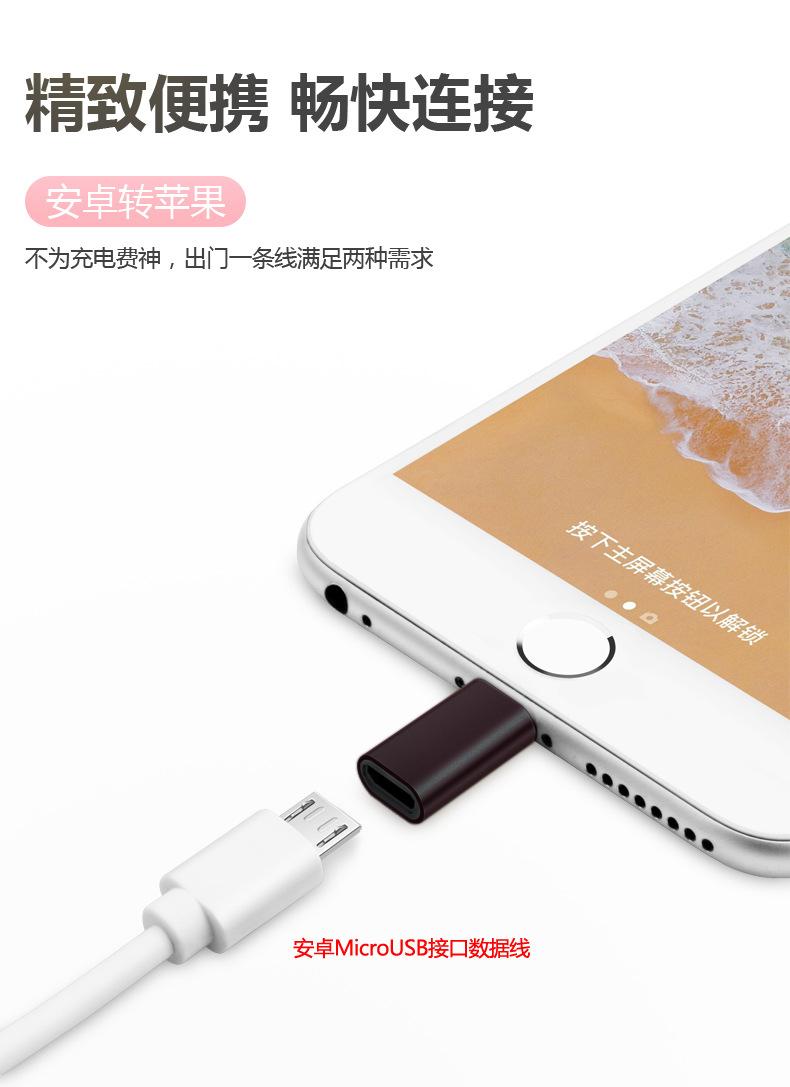 Adaptador de teléfono móvil compatible con Apple, Android, Micro hembra a iPhone, convertidor de datos de carga Lightning.