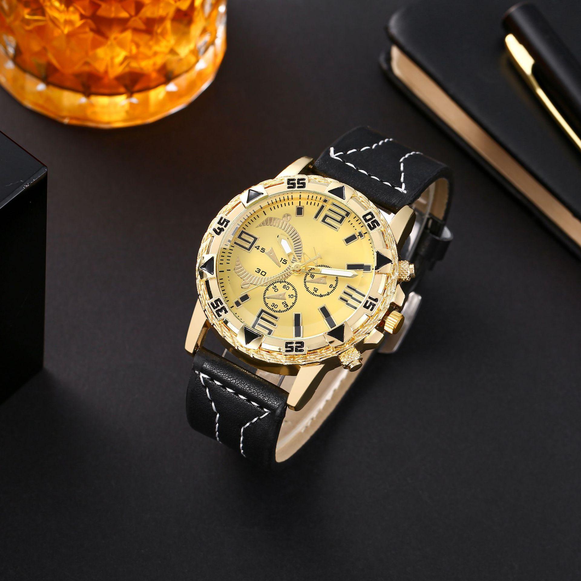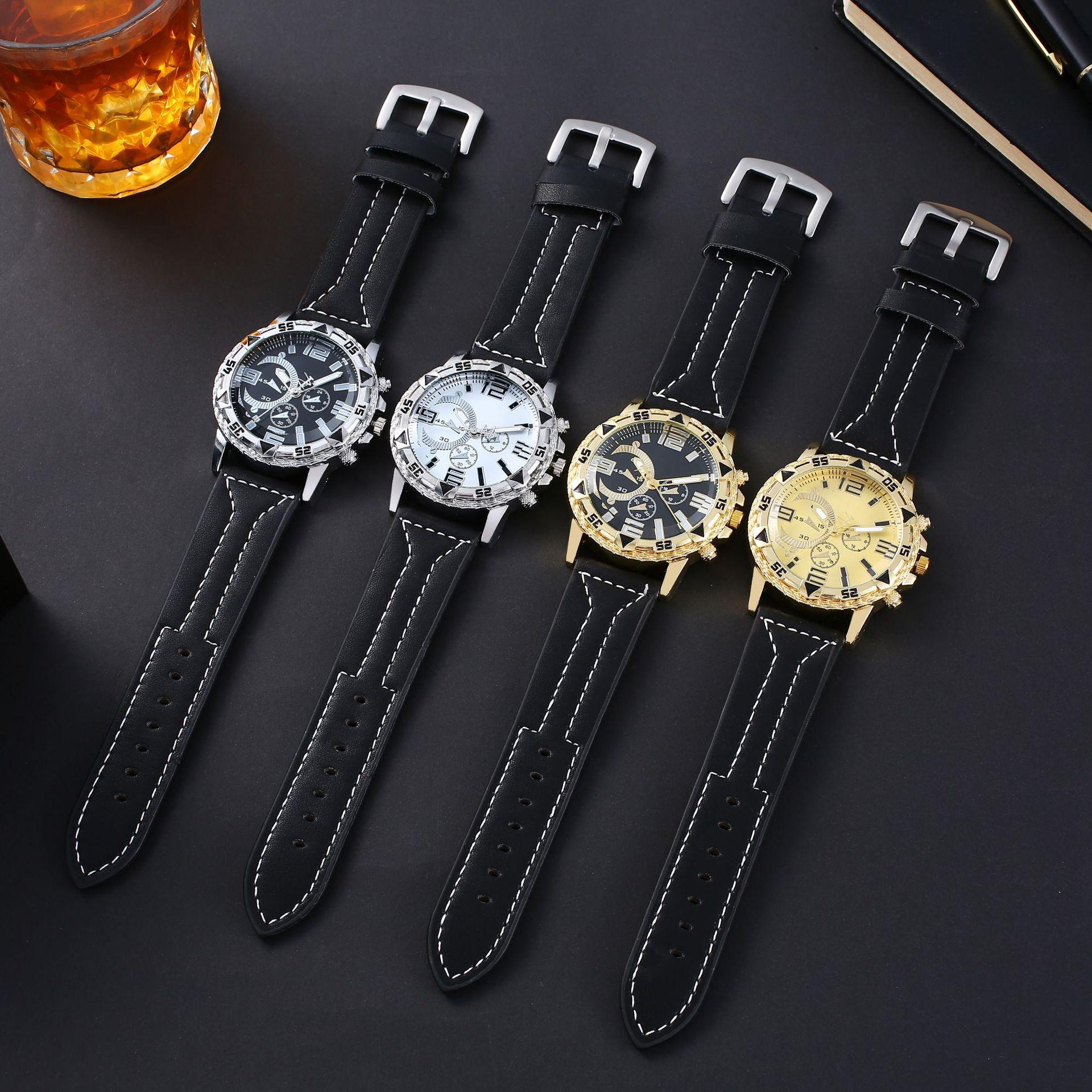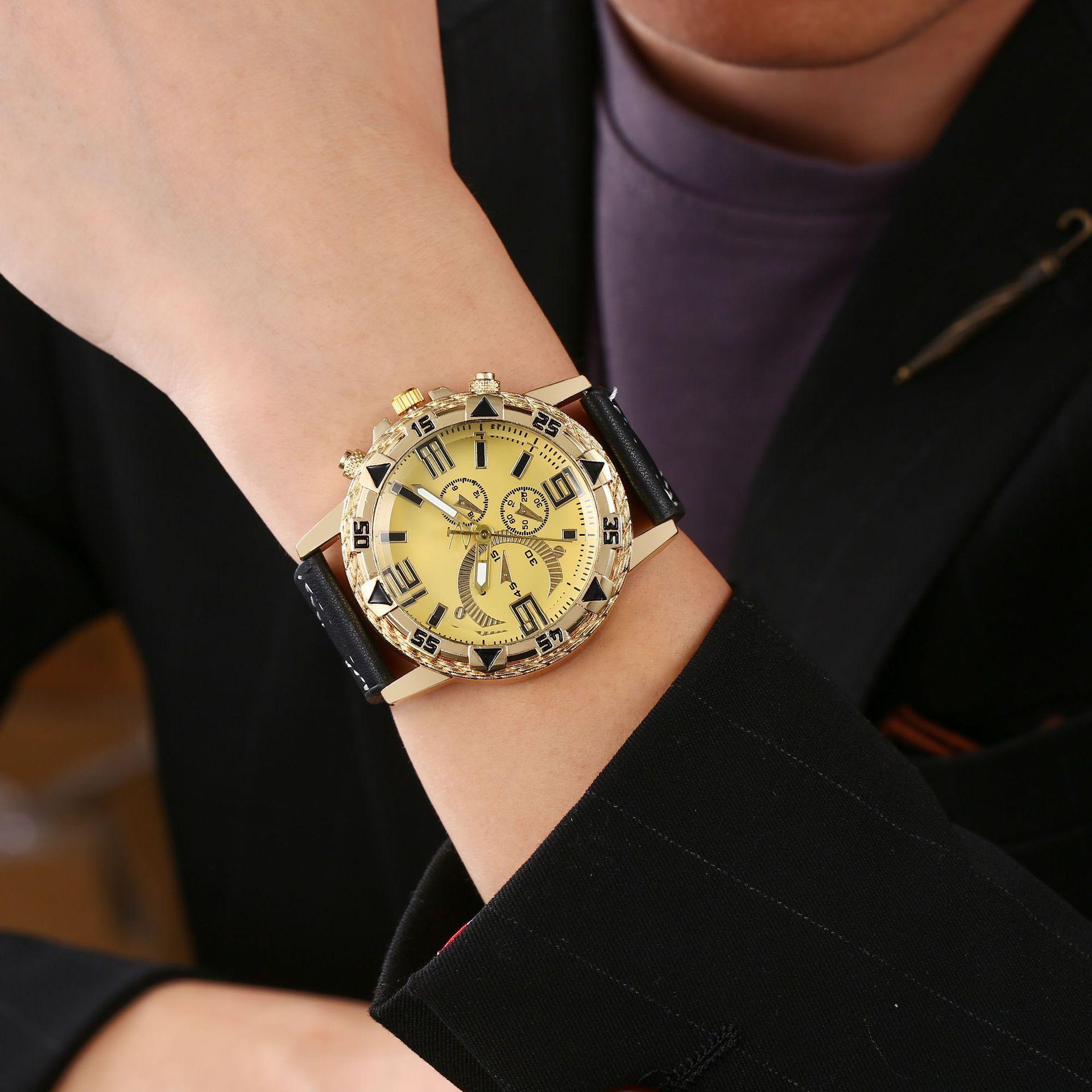 Reloj de cuarzo para hombre, nuevo y de moda, con esfera grande y cinturón dorado, disponible en comercio exterior, al por mayor.