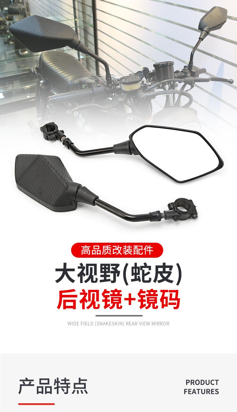Accesorios de modificación del espejo retrovisor de la motocicleta Prince Zhujiang 125 espejo retrovisor de gran campo de visión con código de espejo 22 mm Universal