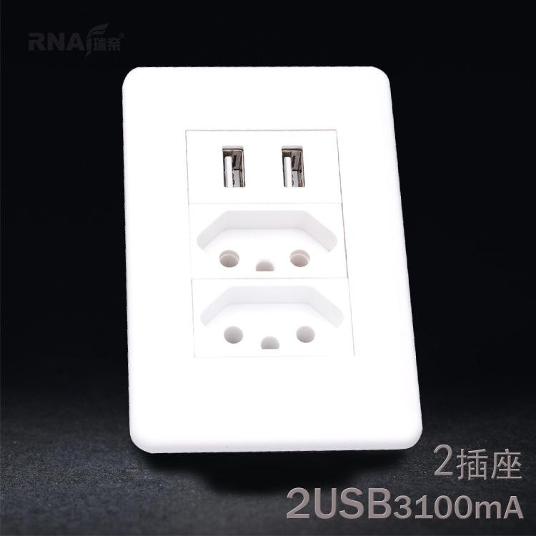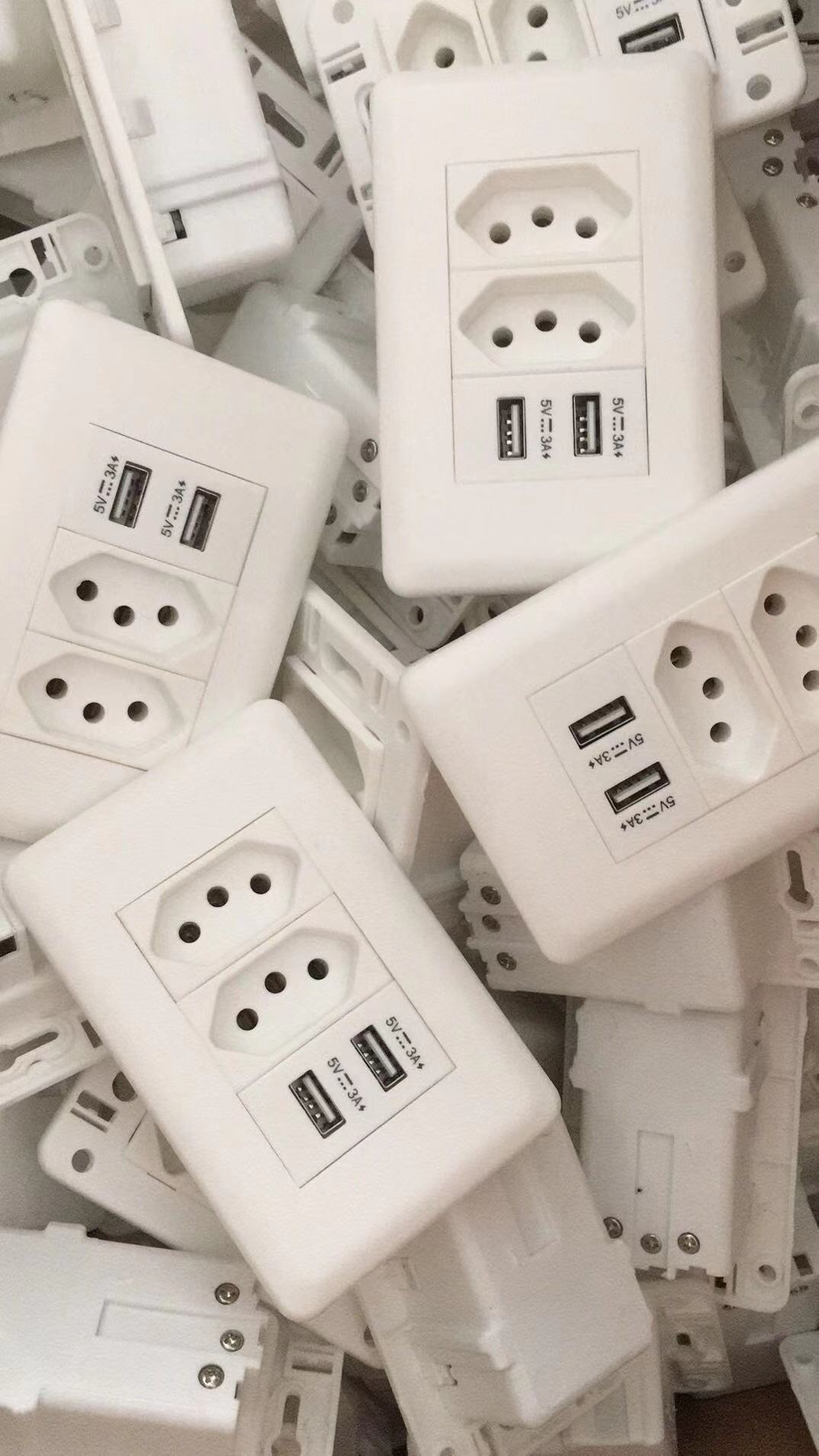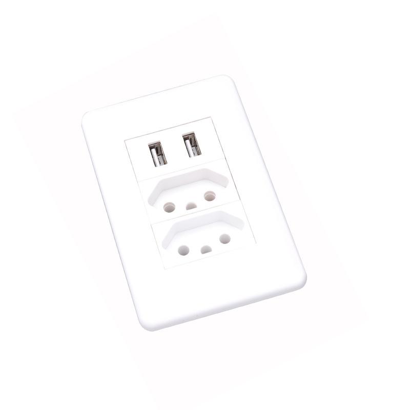 Panel de interruptores para enchufes de pared domésticos de carga rápida de 3 A, enchufes de carga para teléfonos móviles con 2 USB, enchufes con interruptor para Uruguay y Brasil.