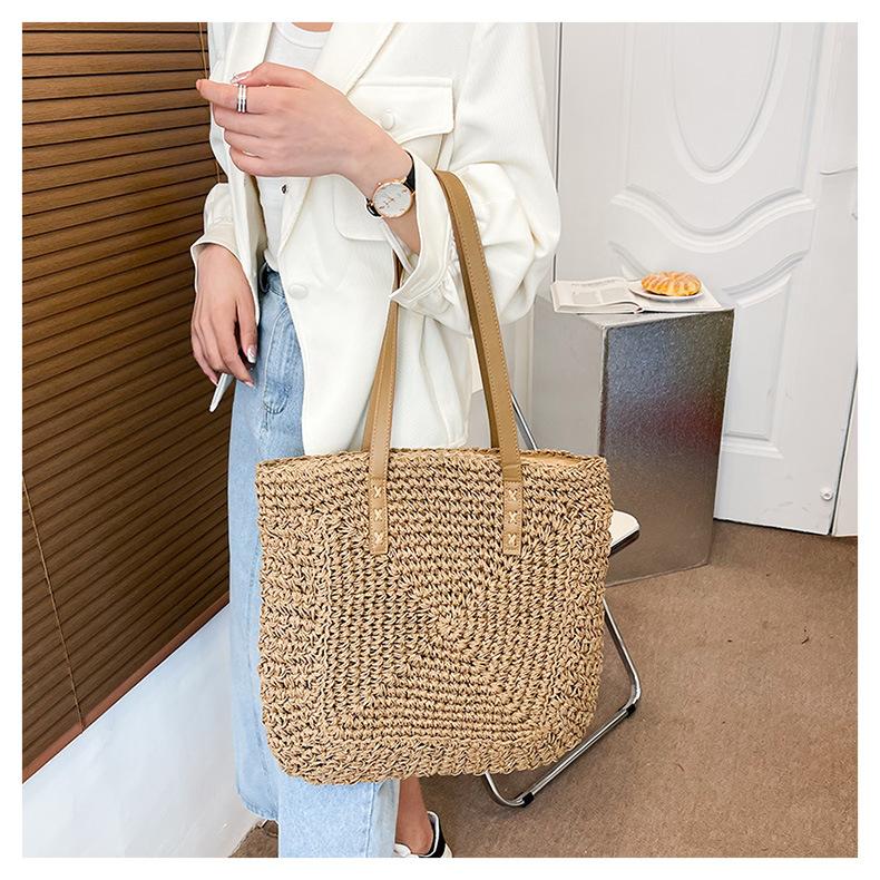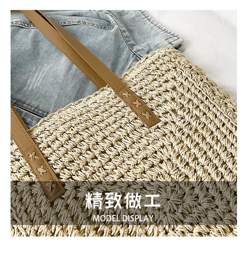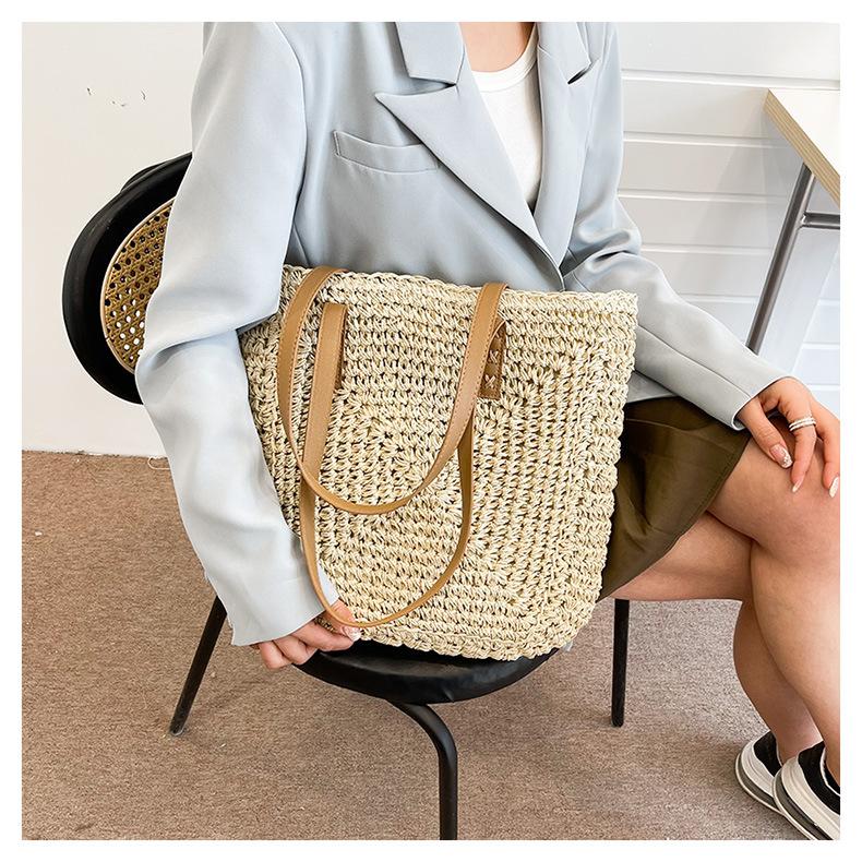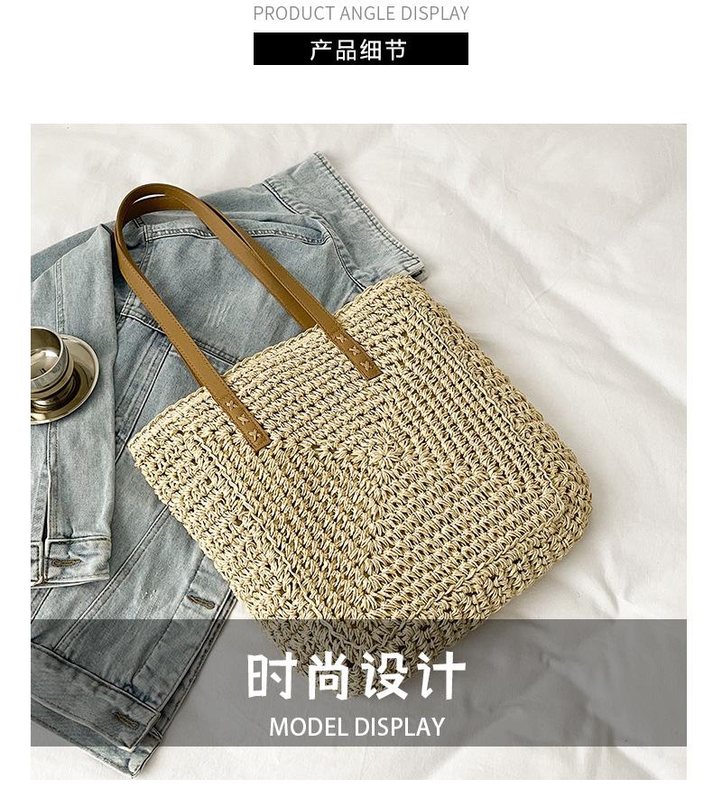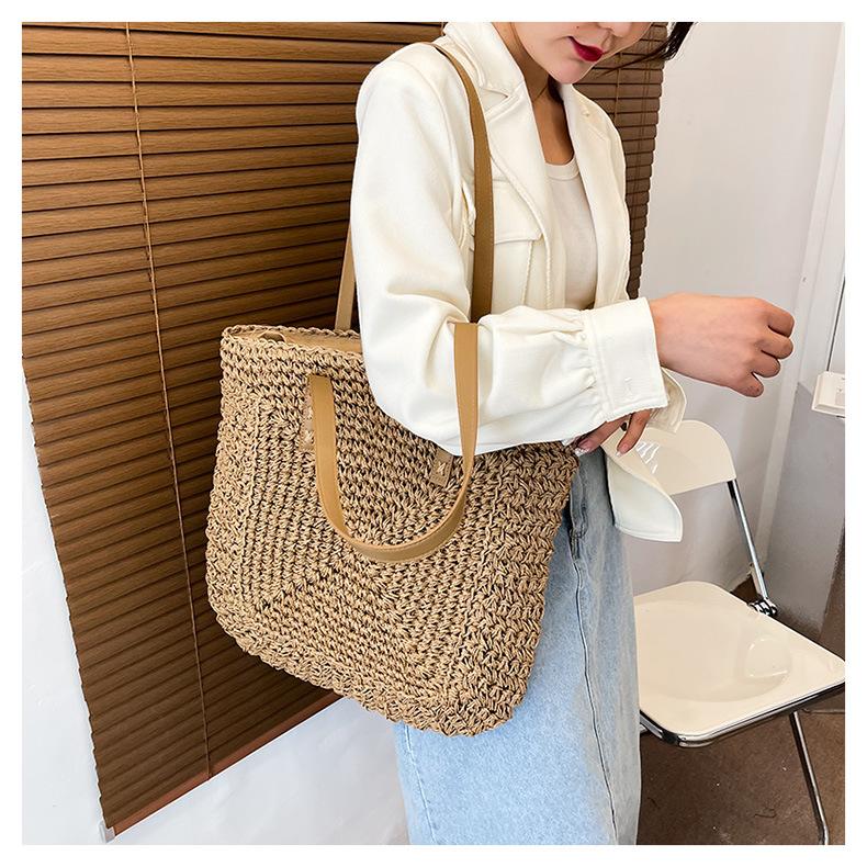 Bolso de Paja Retro de Verano, Bolso de Hombro de Gran Capacidad Moderno y Versátil, Bolso de Mano para Vacaciones en la Playa, Tendencia Tejida Retro
