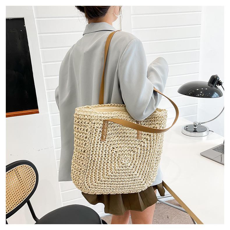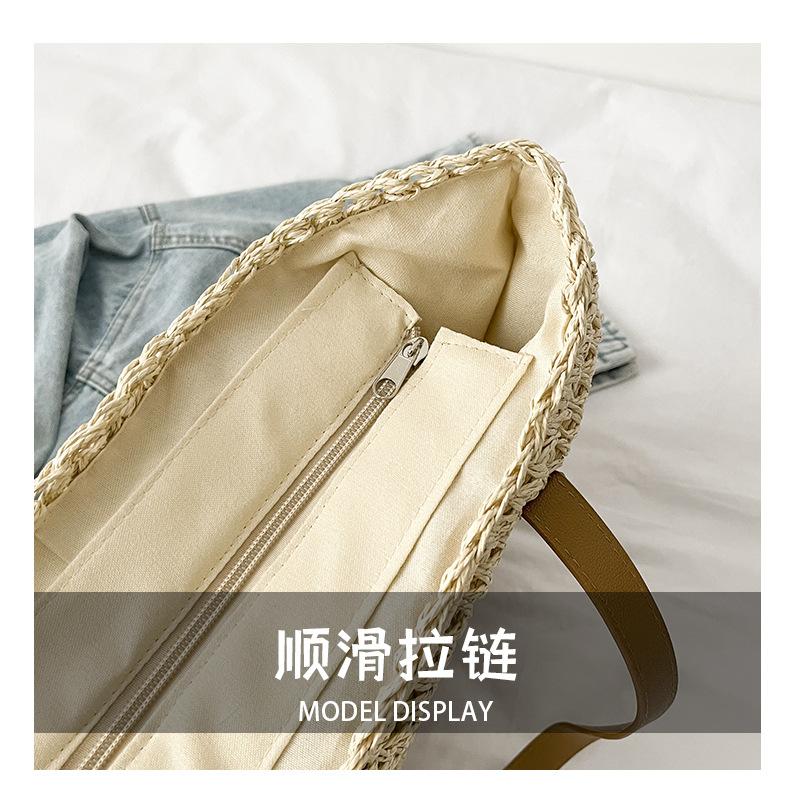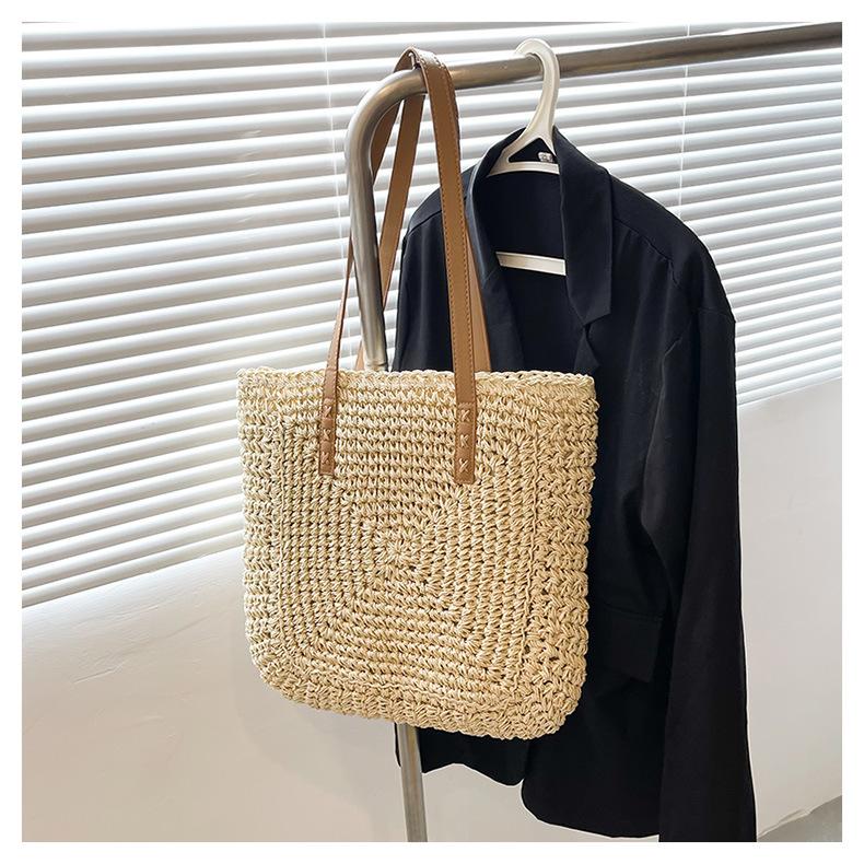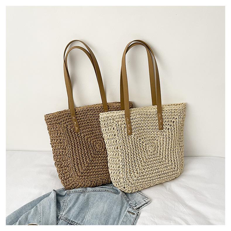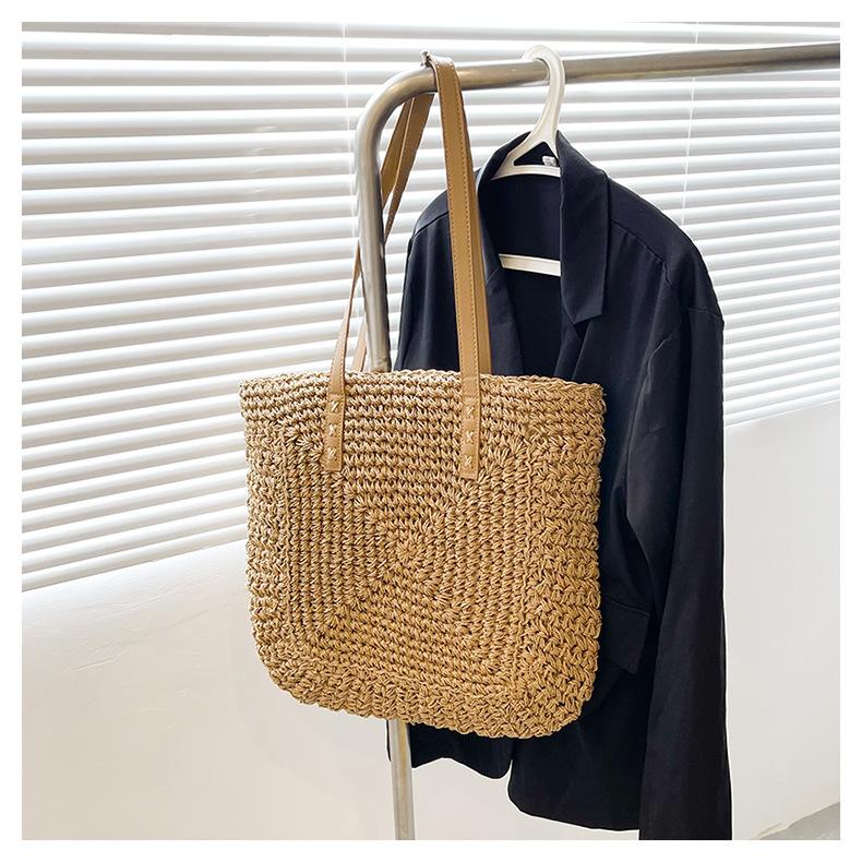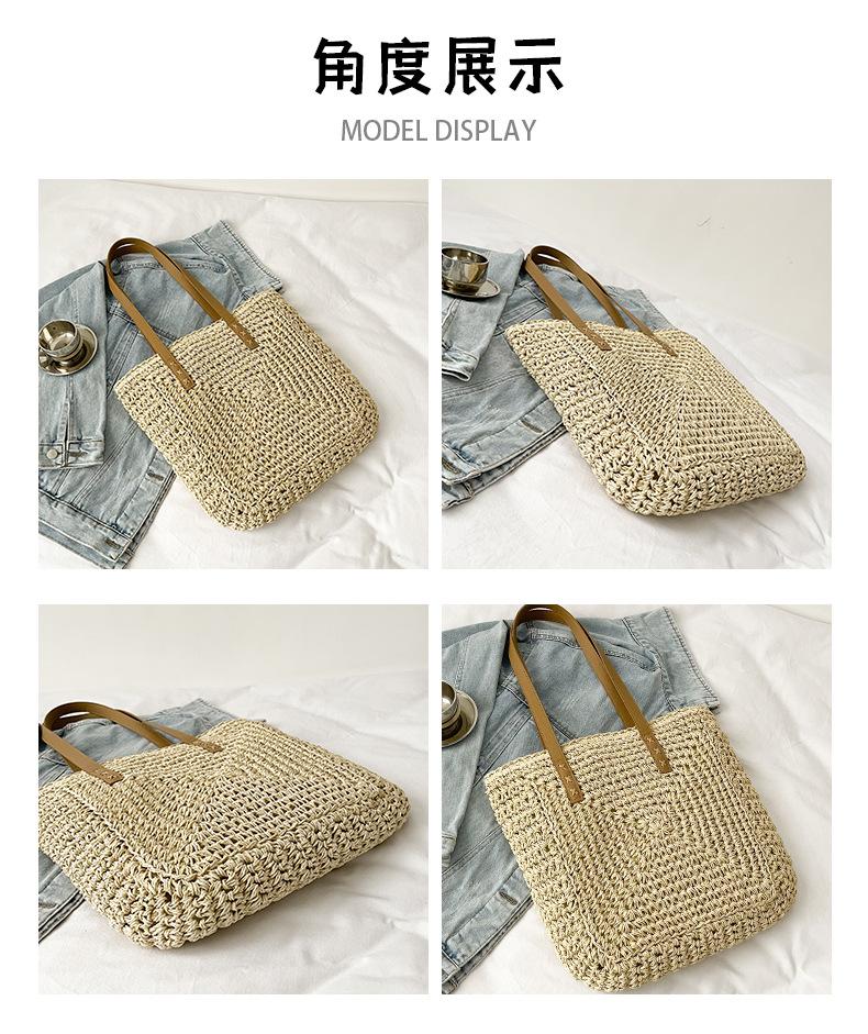 Bolso de Paja Retro de Verano, Bolso de Hombro de Gran Capacidad Moderno y Versátil, Bolso de Mano para Vacaciones en la Playa, Tendencia Tejida Retro