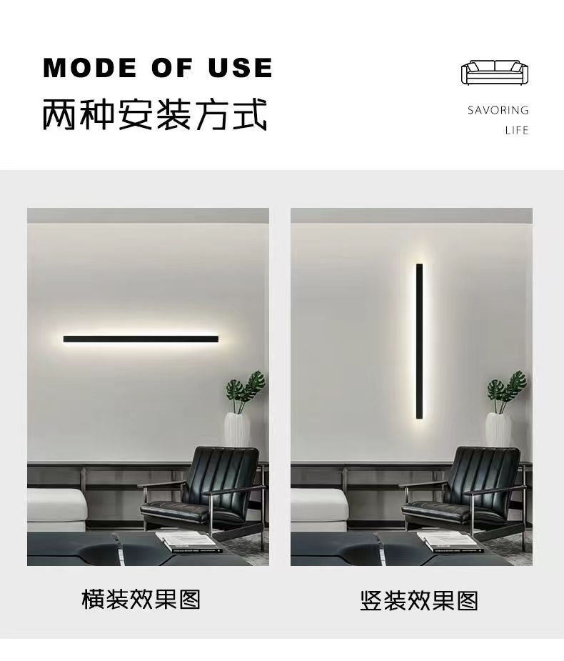 Lámpara de Pared Moderna Simple de Tira de una Palabra Pasillo Dormitorio Sala de Estar Mesita de Noche Fondo de Sofá