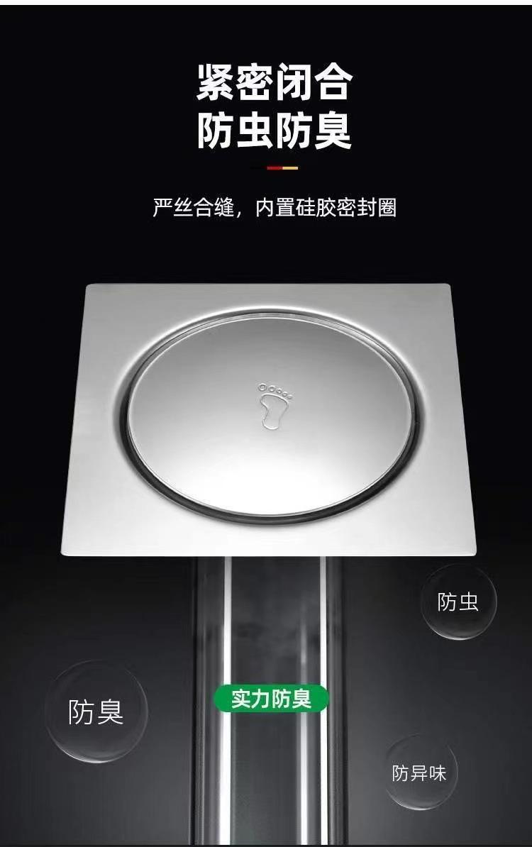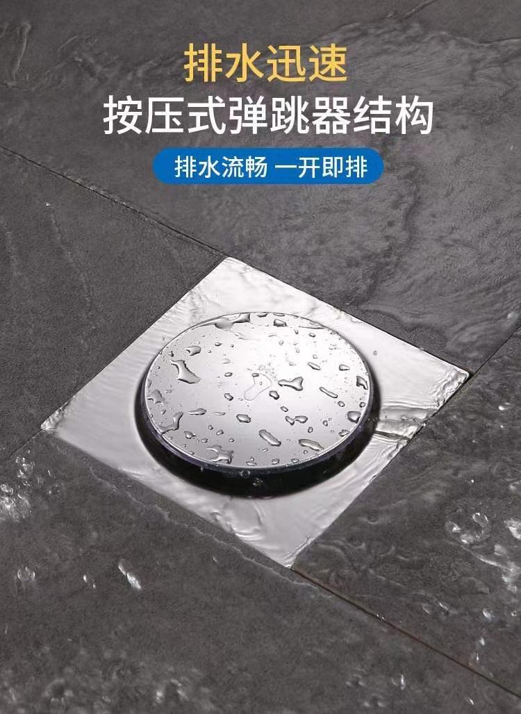 Coladera de piso de acero inoxidable push-type de rebote transfronteriza inodoro desodorizante a prueba de insectos baño con sello de pie coladera de piso de gran desplazamiento