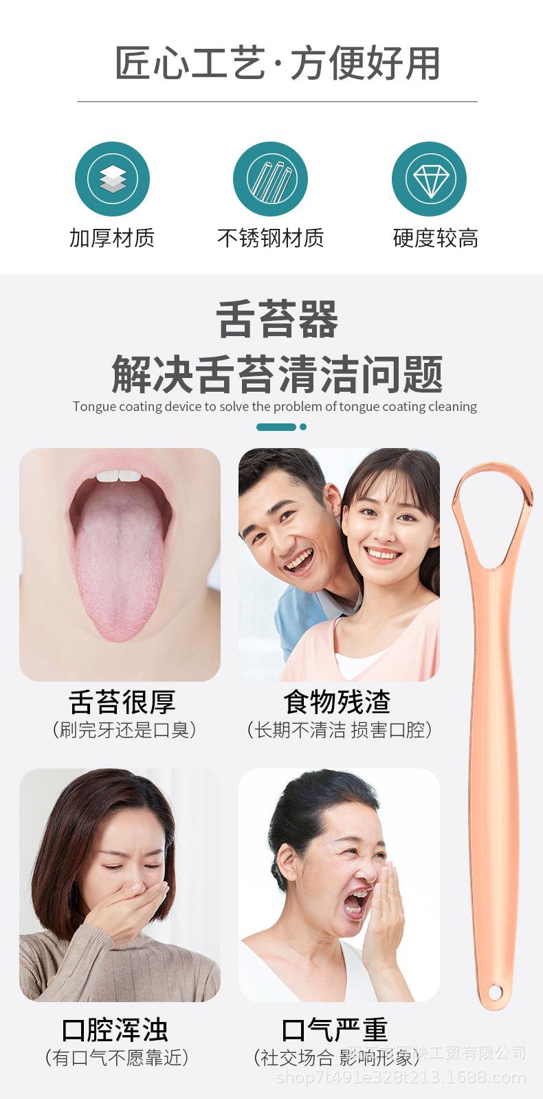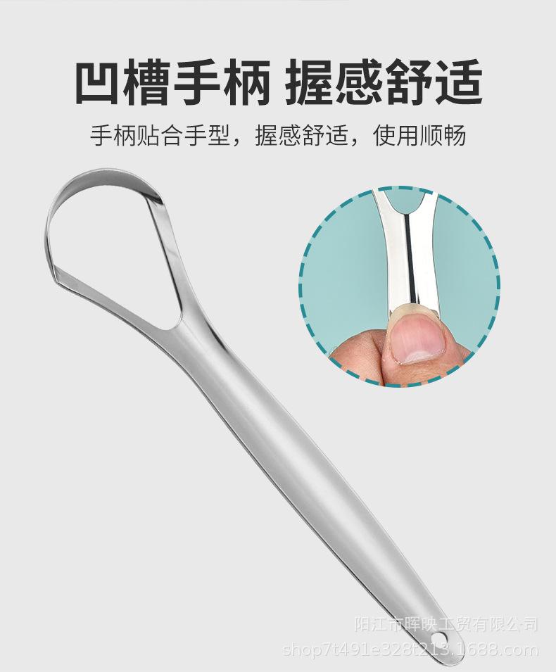 Limpiador de lengua al por mayor, raspador de lengua de acero inoxidable, cuidado de la limpieza bucal para el mal aliento, cepillo de lengua.