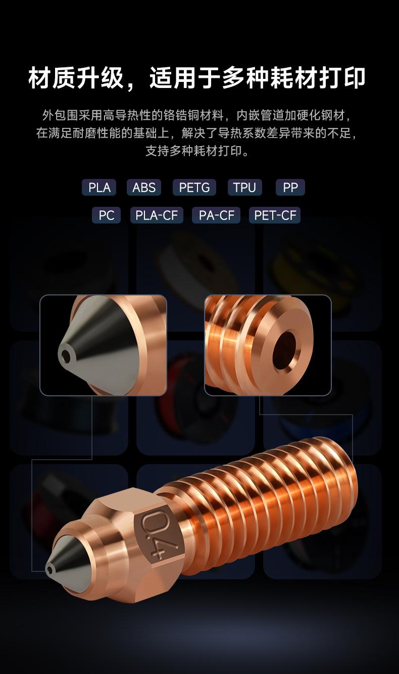 K1 high quality chrome zirconium copper hard steel inlay upgrade nozzle 0.4m (individually packed)