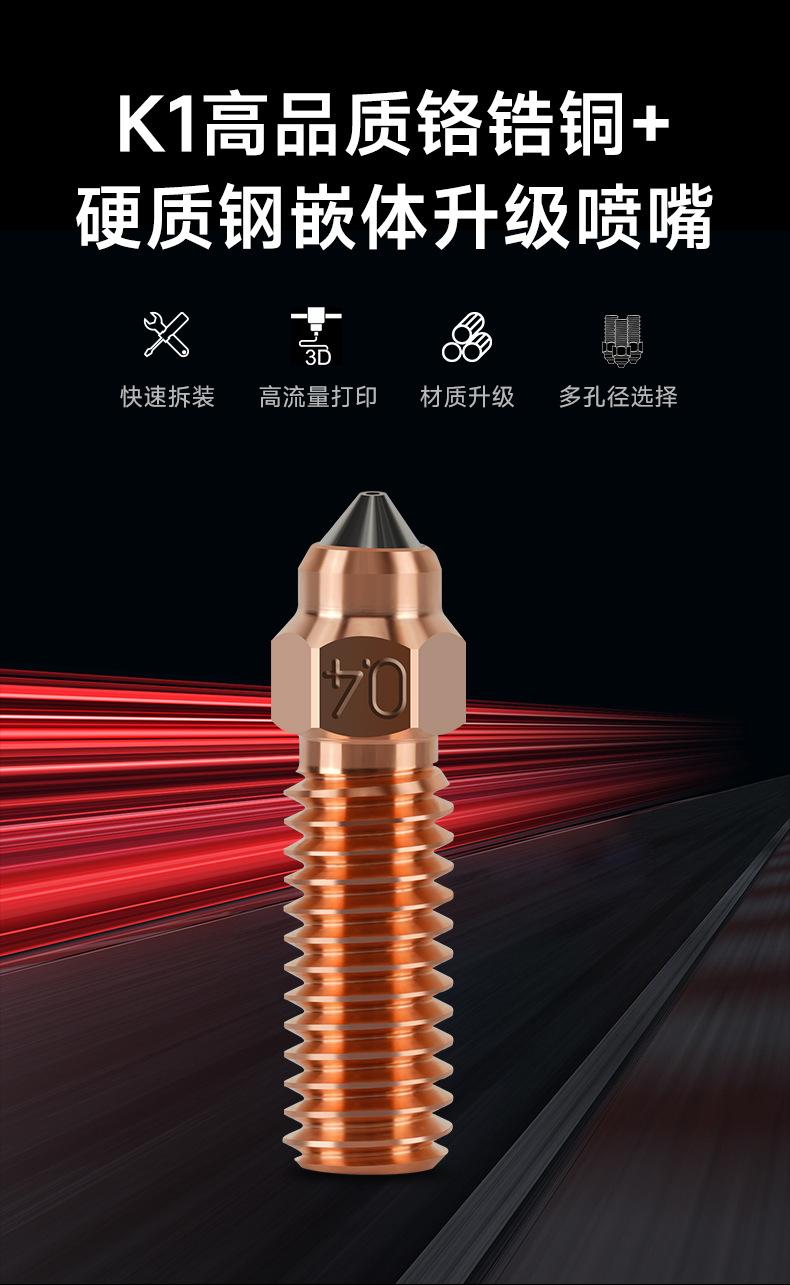 K1 high quality chrome zirconium copper + hard steel inlay upgraded nozzle 0.4m (individually packaged), K1 hi...