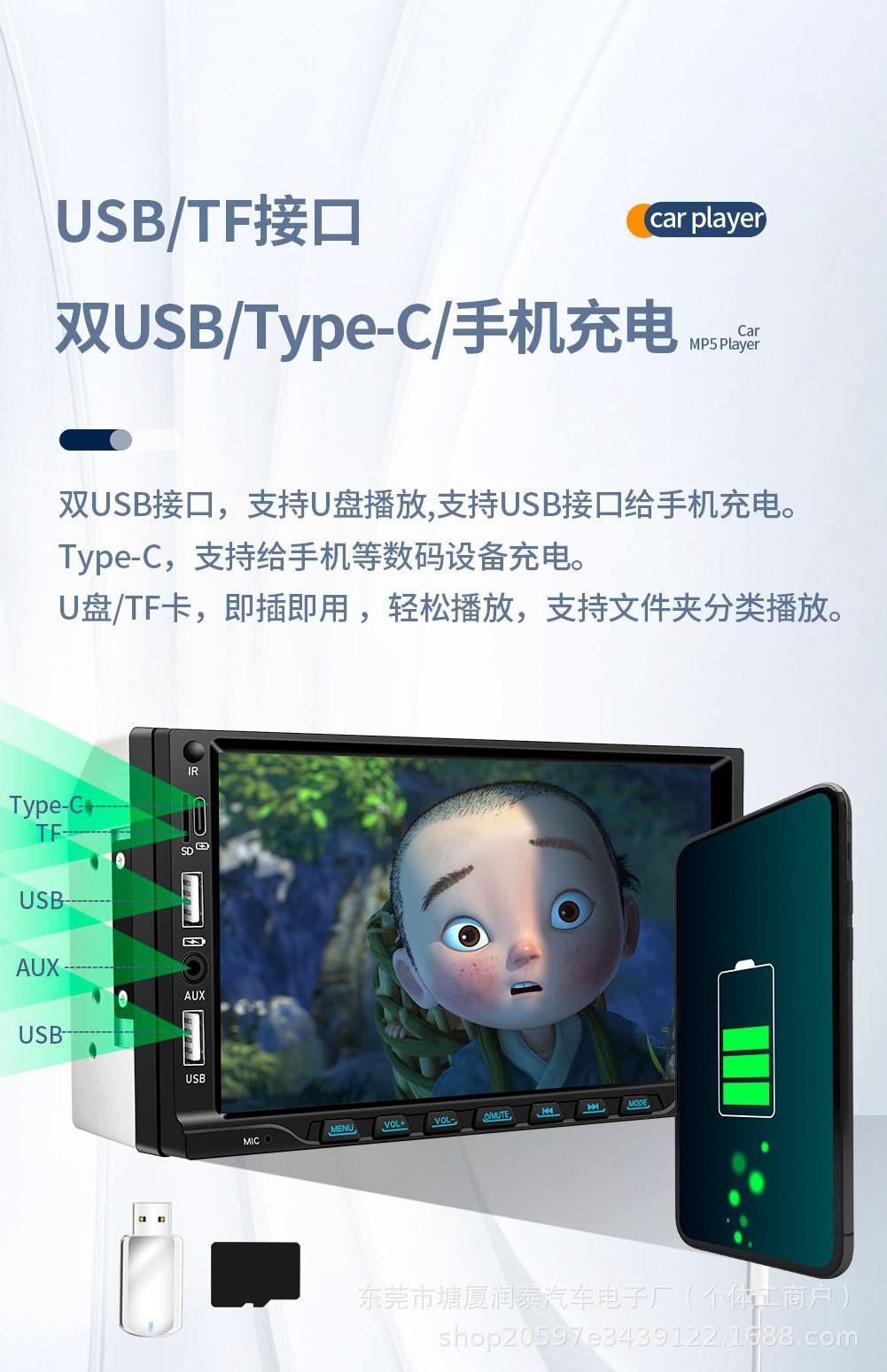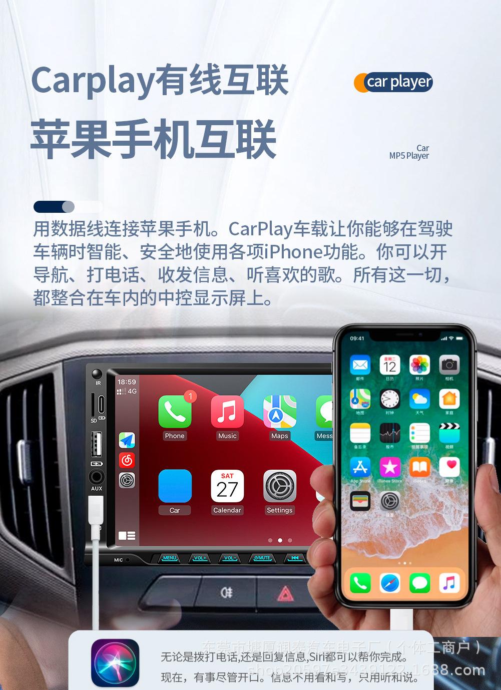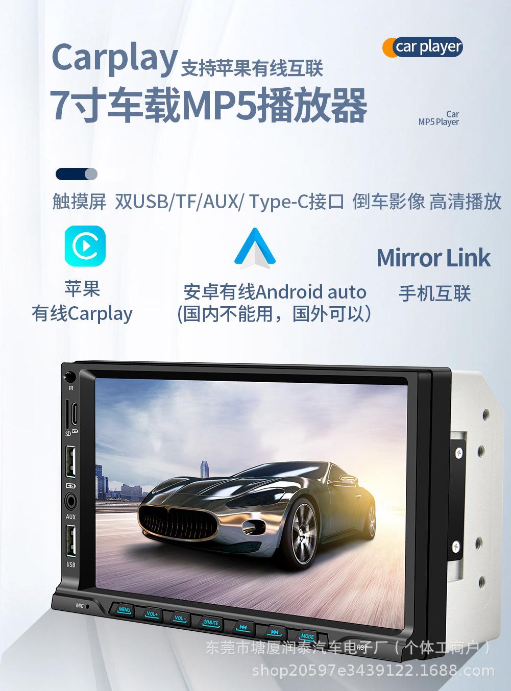 Coche 7 pulgadas Bluetooth reproductor de MP5 para coche con cable Carplay interconectado coche MP4
