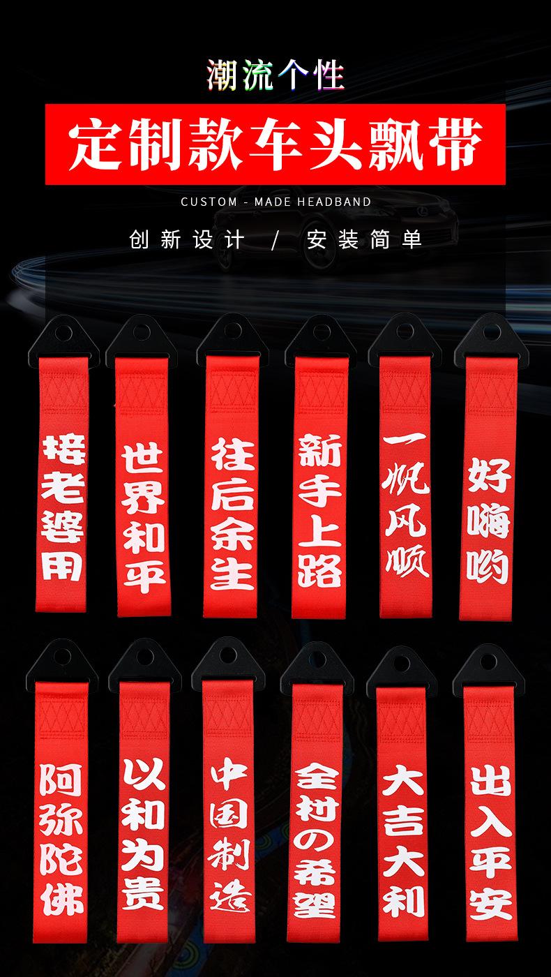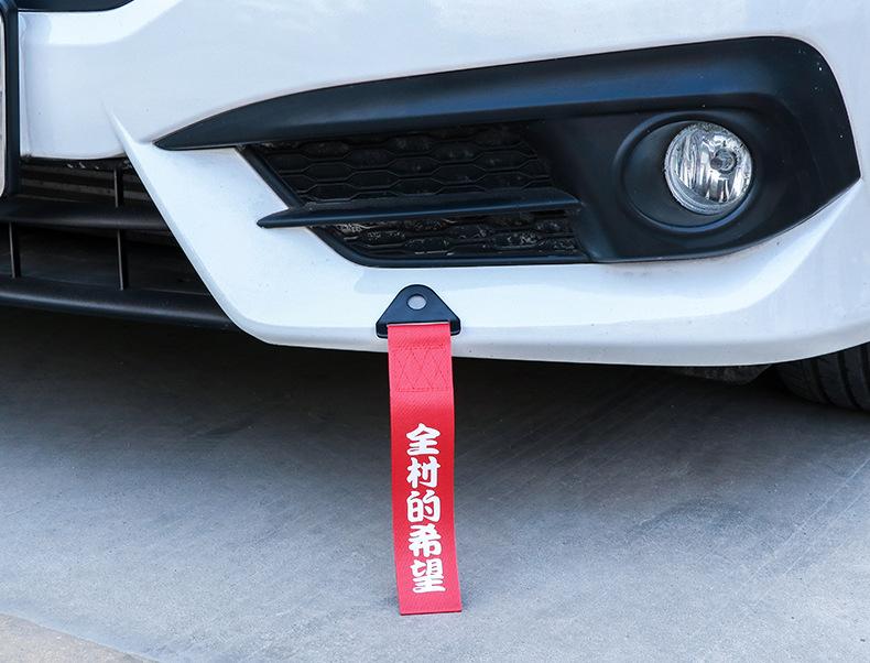Cuerda de remolque para coche modificada cinta de parachoques delantero gancho de cuerda de tracción palabra de personalidad cinta decorativa hecha a sí misma