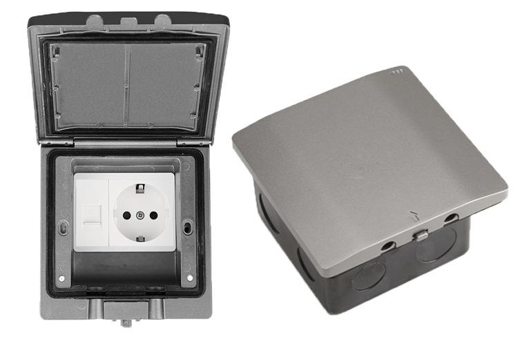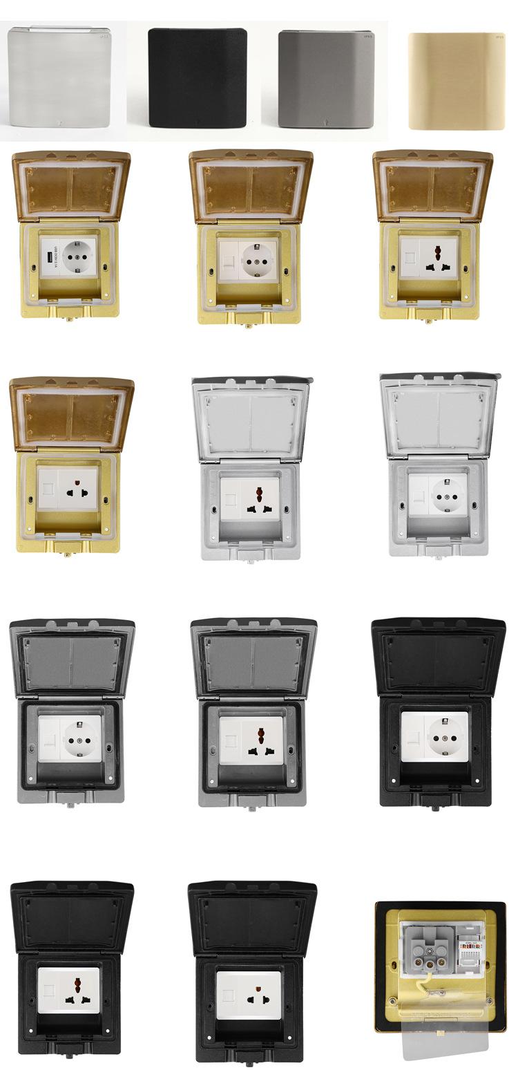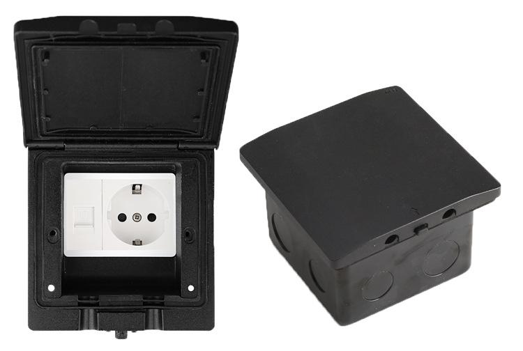 Toma de piso estándar europeo negra gris oscuro transfronteriza para el hogar con tapa abatible oculta para red y USB, resistente al agua